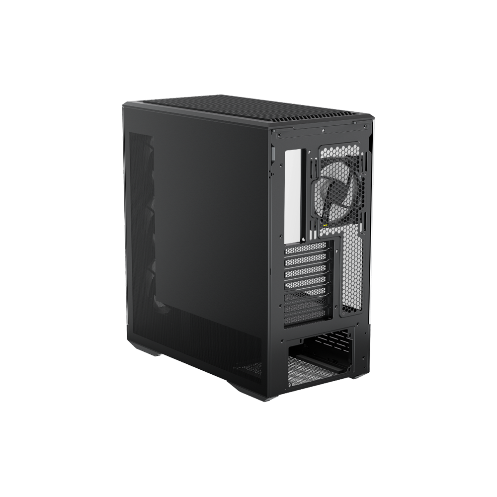 Strong Cooling & Radiator Support - Supports multiple fan placement options — side (3×120 mm), top (3×120 mm or 2×140 mm), rear (1×120 mm), bottom (up to 2×120 mm) — and liquid cooling up to 360 mm at the top.