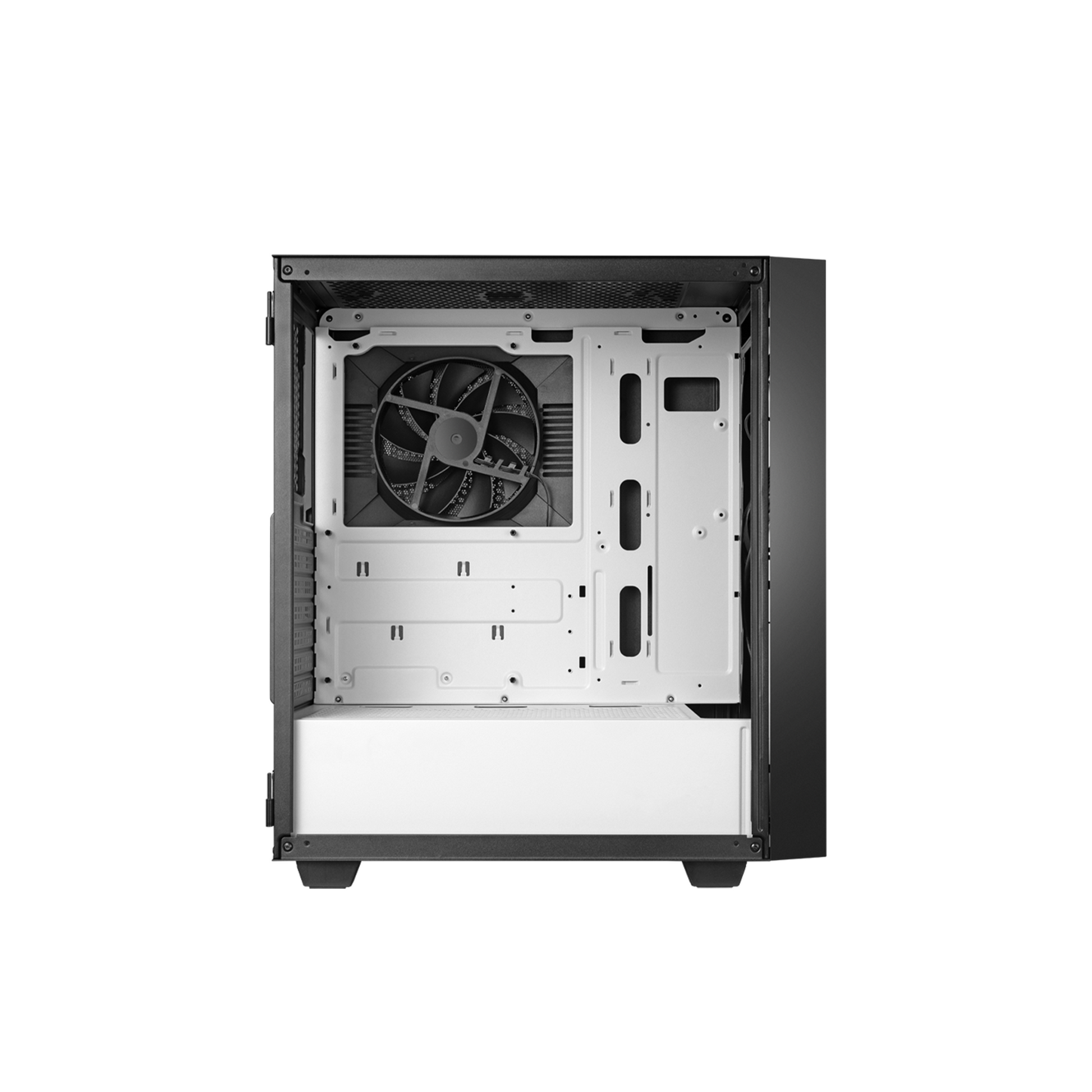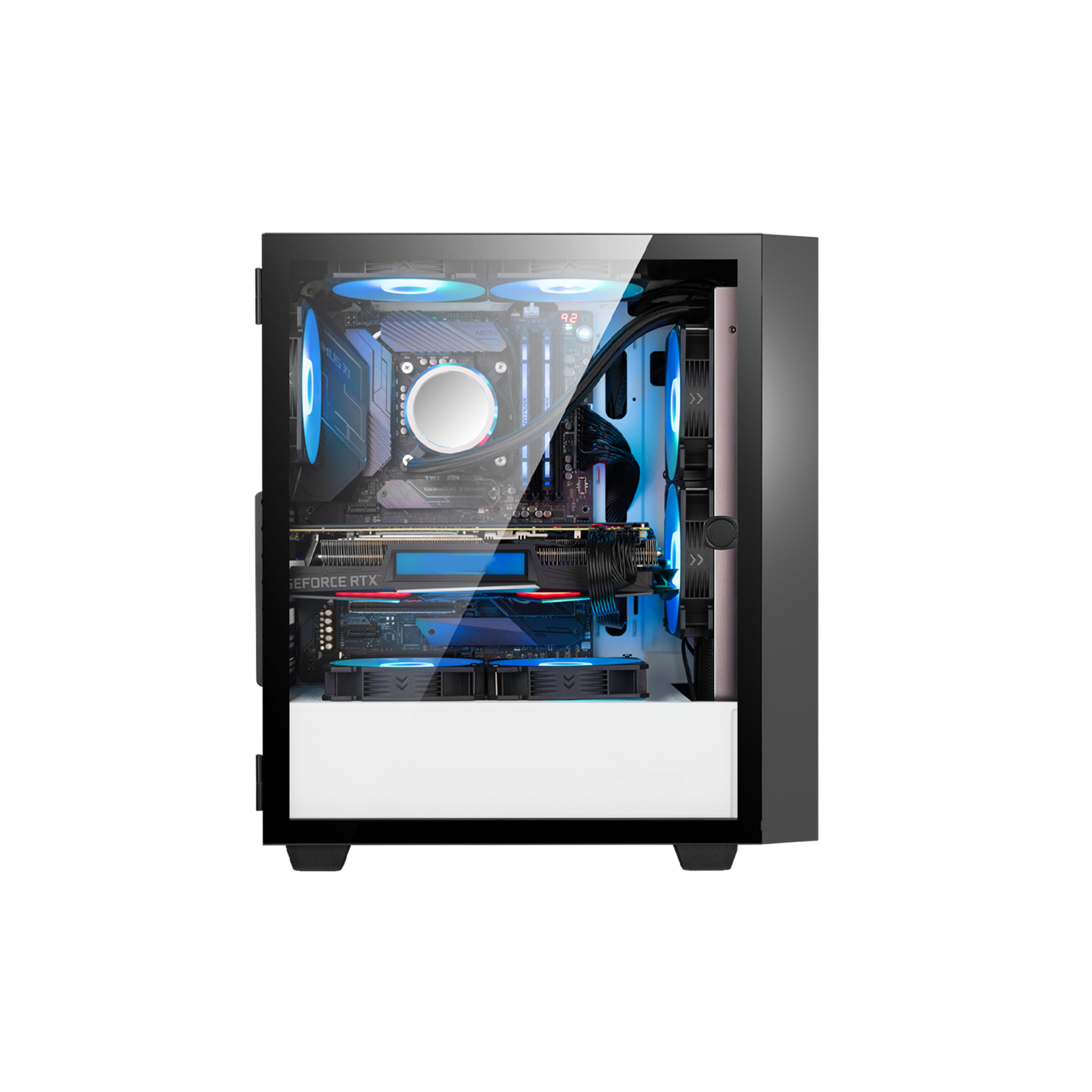 Tempered Glass Side Panel - The 3mm hinged tempered glass side panel provides durability and a clear view of internal components, enhancing the aesthetic appeal.