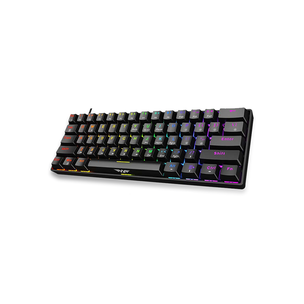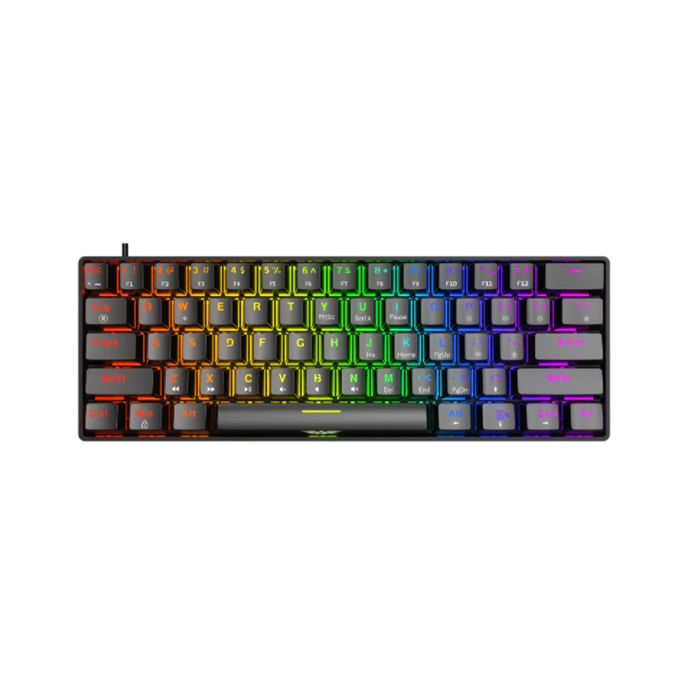 Enhance gaming with the Armaggeddon MKA-1C NEX Gaming Keyboard in Black Clicky. This 61-key mechanical keyboard features hot-swappable 5-pin switches, N-key rollover, fade-proof keypads, 12+1 custom EFX backlights, and a 1.6m detachable USB-A cable for responsive performance.