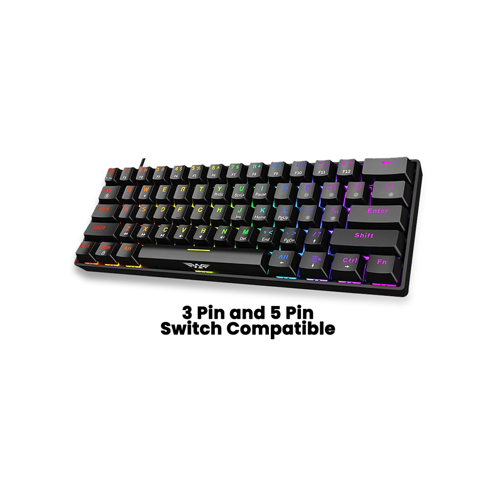 Hot-Swappable 5-Pin Mechanical Switches - The Armaggeddon MKA-1C NEX features hot-swappable 5-pin clicky switches, supporting both 3-pin and 5-pin designs. This allows easy customization without soldering, enabling users to tailor tactile feedback for gaming and typing, ensuring precision and durability.