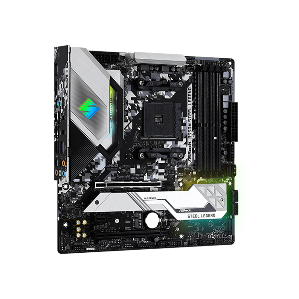 The ASRock B550M Steel Legend AM4 Micro-ATX Motherboard delivers excellent performance with support for AMD Ryzen processors. Featuring PCIe 4.0, DDR4 memory, and robust cooling solutions, it provides smooth gameplay and reliable multitasking. Designed for gamers and enthusiasts, this motherboard supports advanced storage solutions and offers superior durability with its steel design.