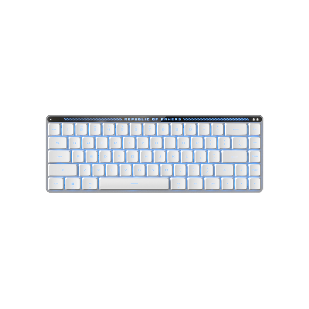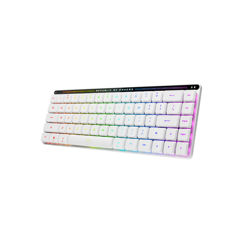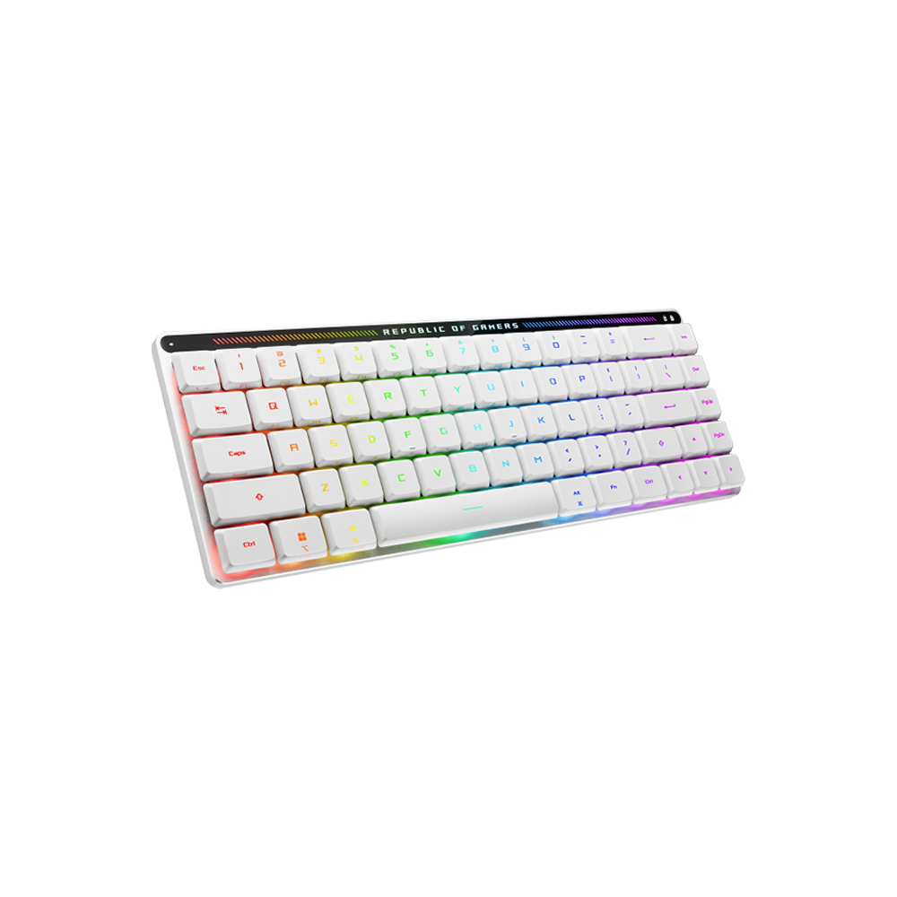 The ASUS ROG Falchion RX Low Profile Gaming Keyboard, available in white with RX Blue or Red switches, offers a sleek, compact 65% design. Featuring ROG RX optical switches, dual connectivity, and Aura Sync RGB, it ensures precision and style for gamers.