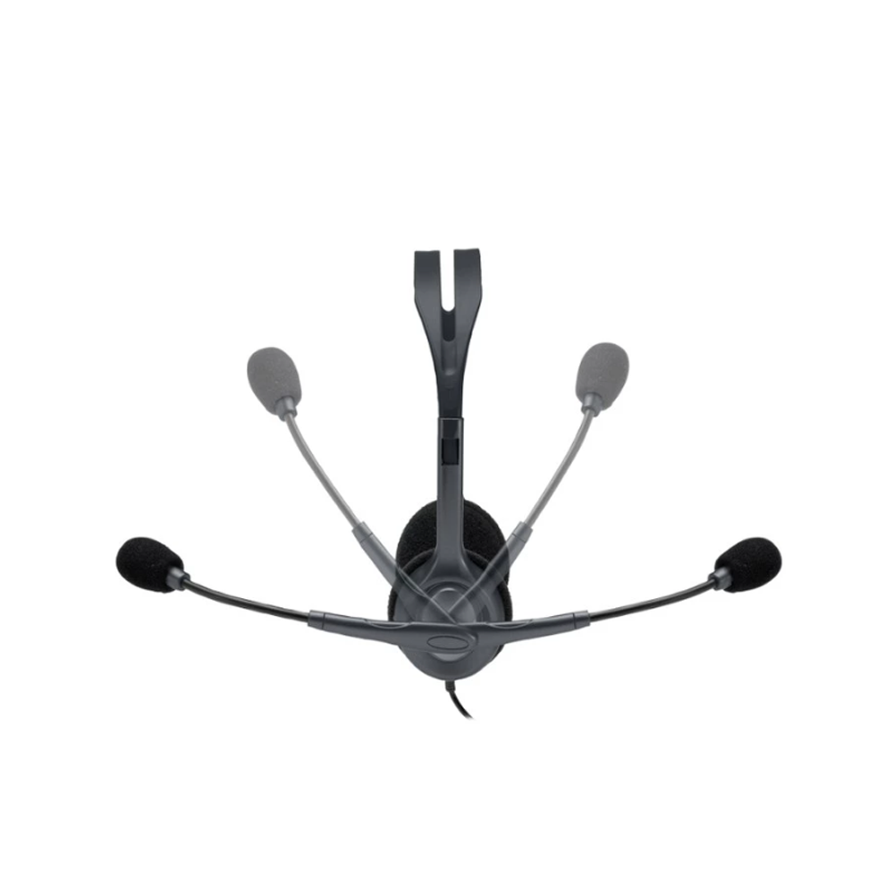 A simple, reliable wired stereo headset with dual-plug 3.5 mm audio + mic connectors — offering stereo sound, a rotatable microphone, and comfortable adjustable fit, ideal for calls, online meetings, music or light gaming.