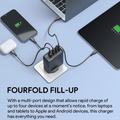 Multi-Task-King Has Come - Total 100W output and 4-device charging. When used on its own, while 45W Power Delivery for each USB-C ports and 12W split between USB-A ports when four ports used together. Designed to work with most popular USB-powered devices including USB-C laptops, tablets, iPhones, Android phones, wireless speakers & headphones, wearables, and photography gear.