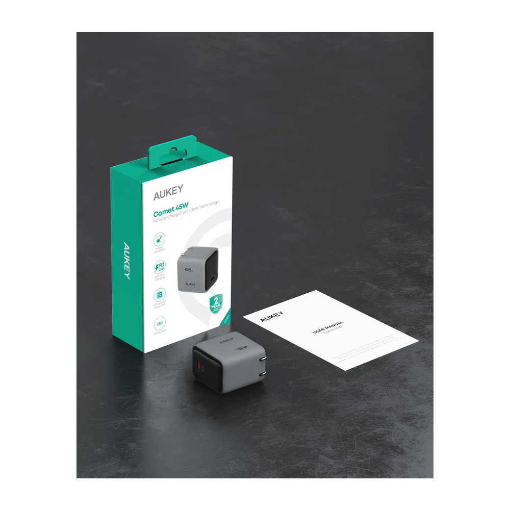 The AUKEY PA-C2 Comet 45W PD Wall Charger (Grey) combines fast charging with compact portability, featuring GaN technology for superior efficiency. With 45W Power Delivery, it rapidly charges smartphones, tablets, and laptops. Its sleek grey design and foldable plug make it ideal for travelers and professionals seeking powerful, space-saving charging solutions.