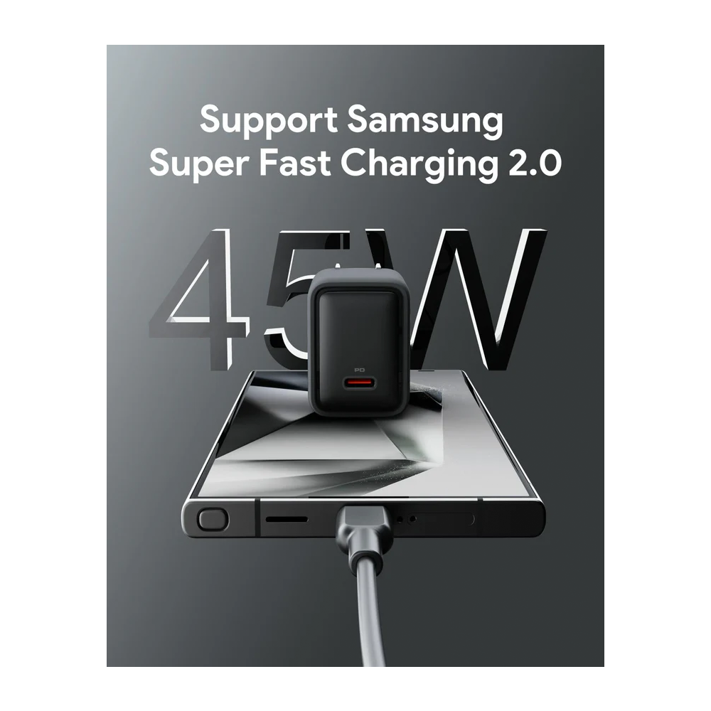 Universal Compatibility with PD 3.0 Support - Equipped with PD 3.0 technology, this 45W charger is compatible with iPhone, iPad, Samsung Galaxy, and USB-C laptops. It intelligently adjusts power output for optimal charging speeds, providing versatile performance for multiple devices, ensuring seamless power delivery wherever you go.