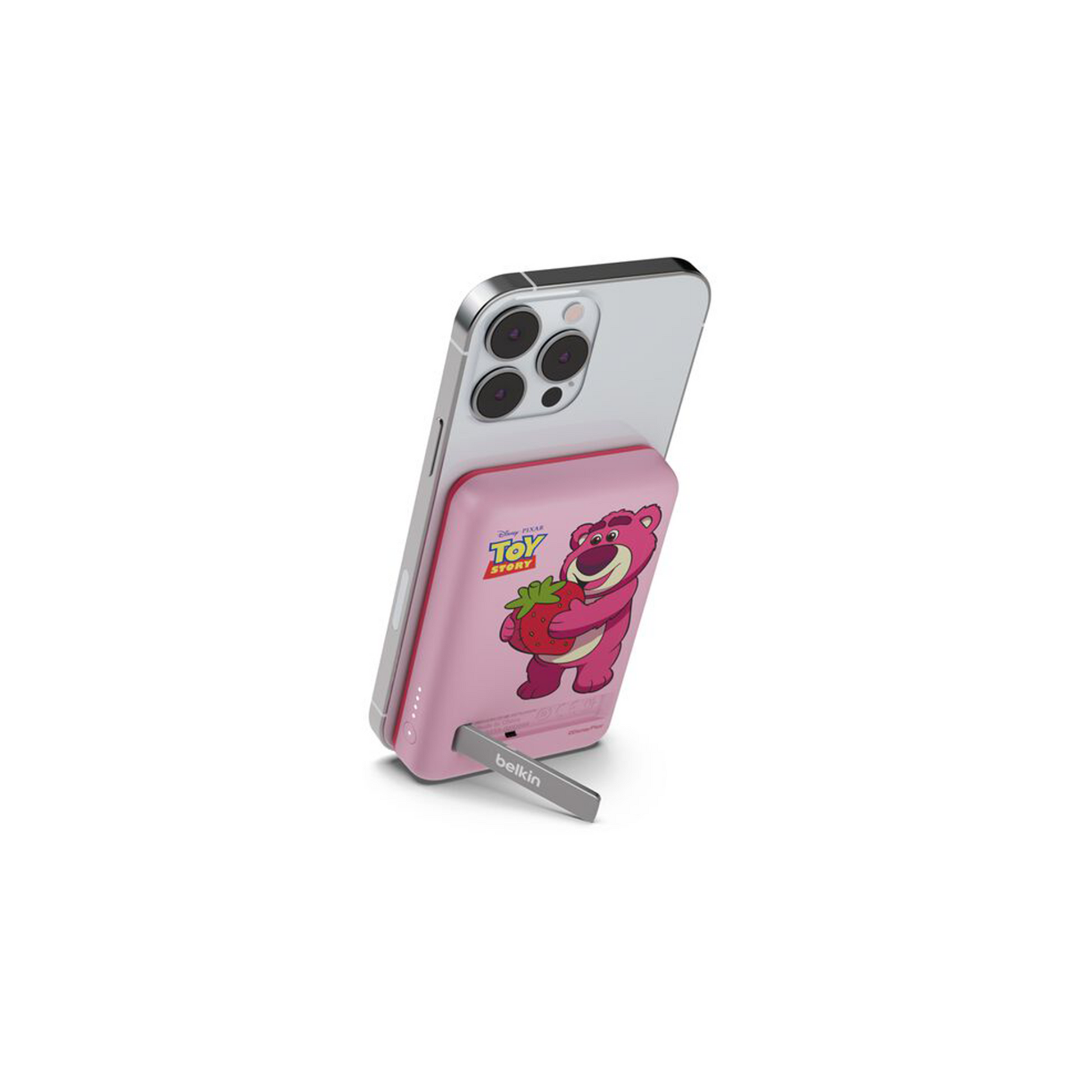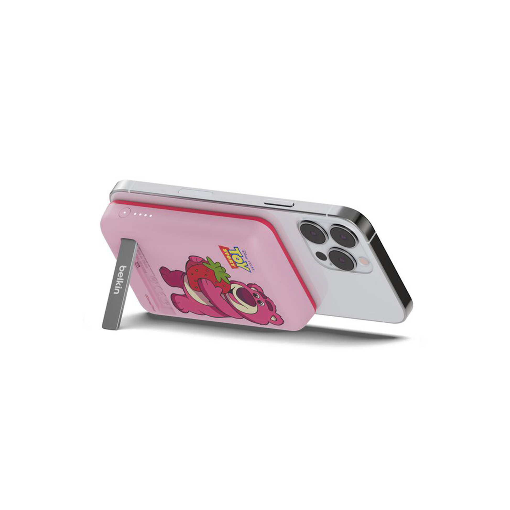 The Belkin BoostCharge 5000mAh 10W Magnetic Wireless Power Bank – is a limited-edition portable charger that combines functionality with a playful design. Featuring a fold-out kickstand and MagSafe compatibility, it offers convenient wireless charging for iPhones and other devices.
