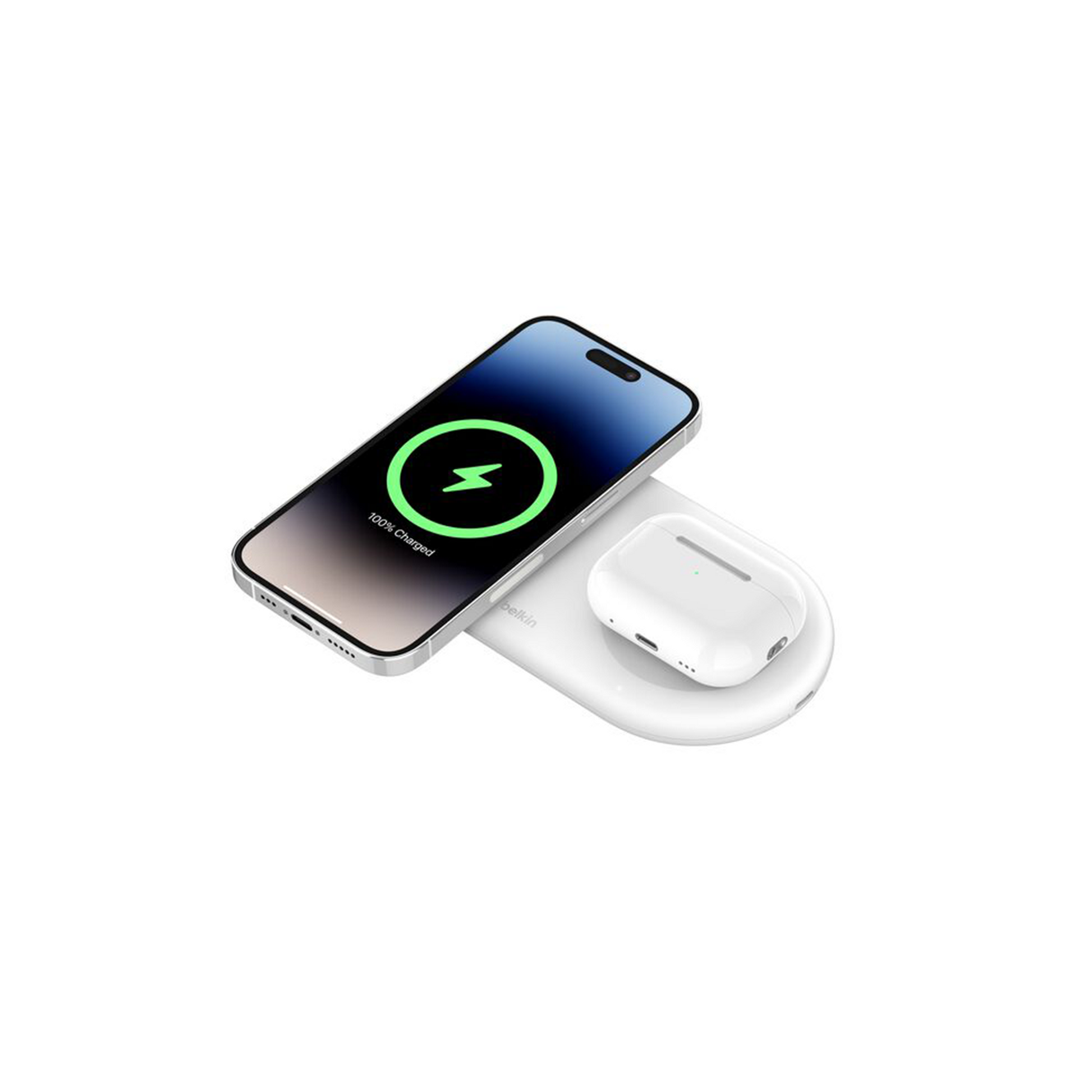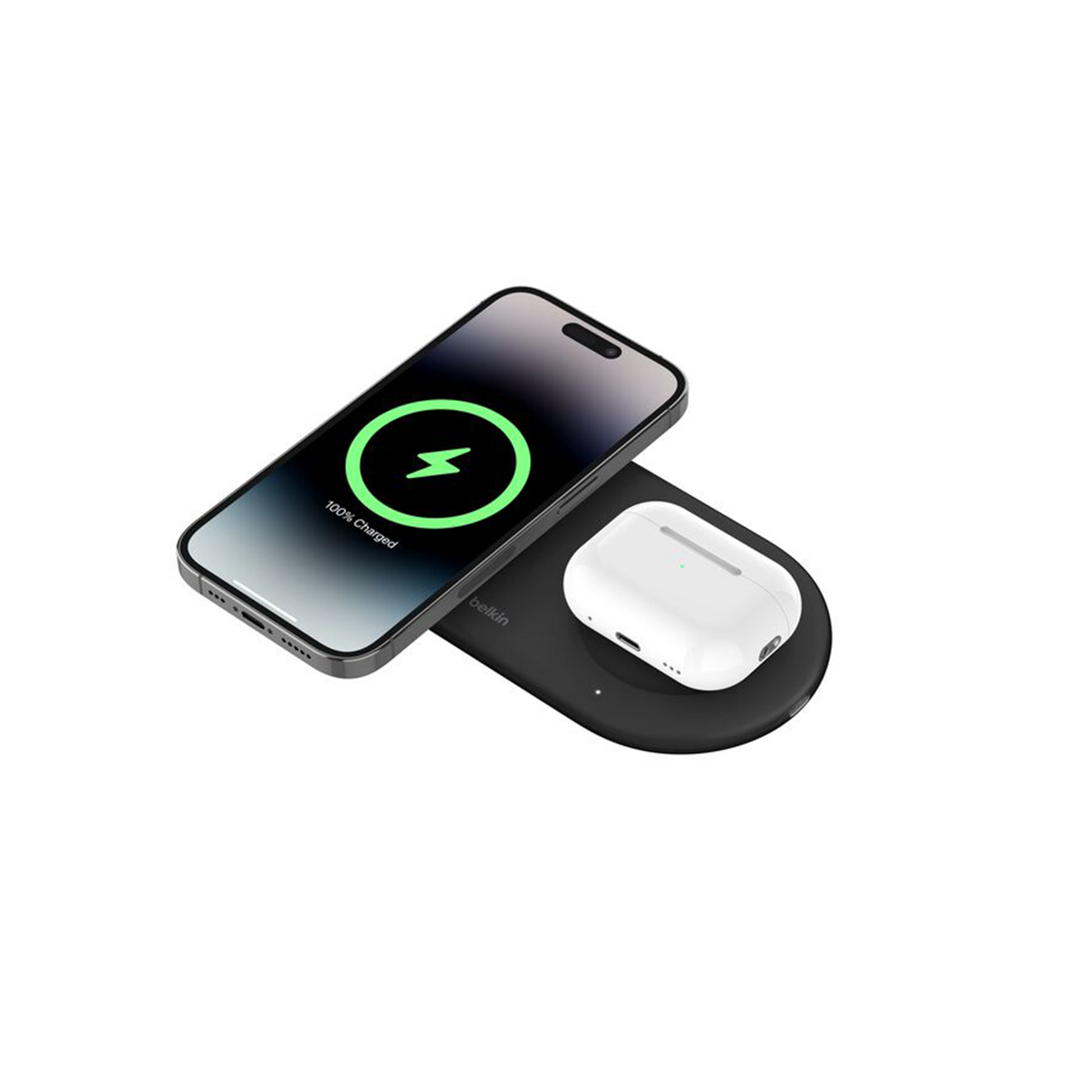 Two pads for wireless charging. - Wirelessly charge two devices at once. Get up to 15W of fast charging for your iPhone on the Qi2 pad and up to 5W of standard speed charging for AirPods or other devices on the Qi pad.