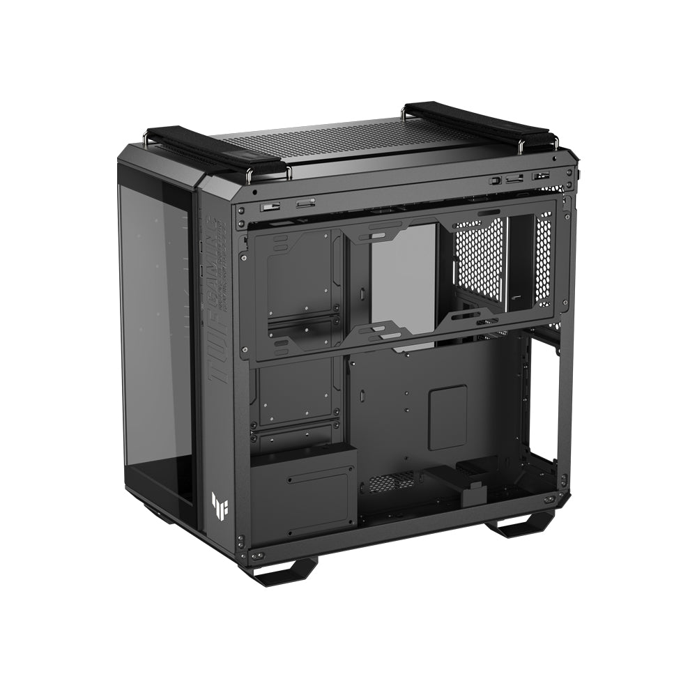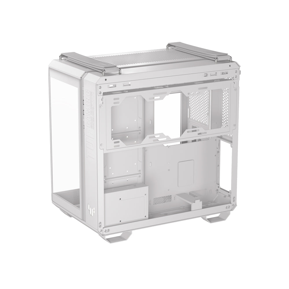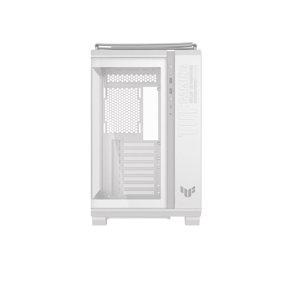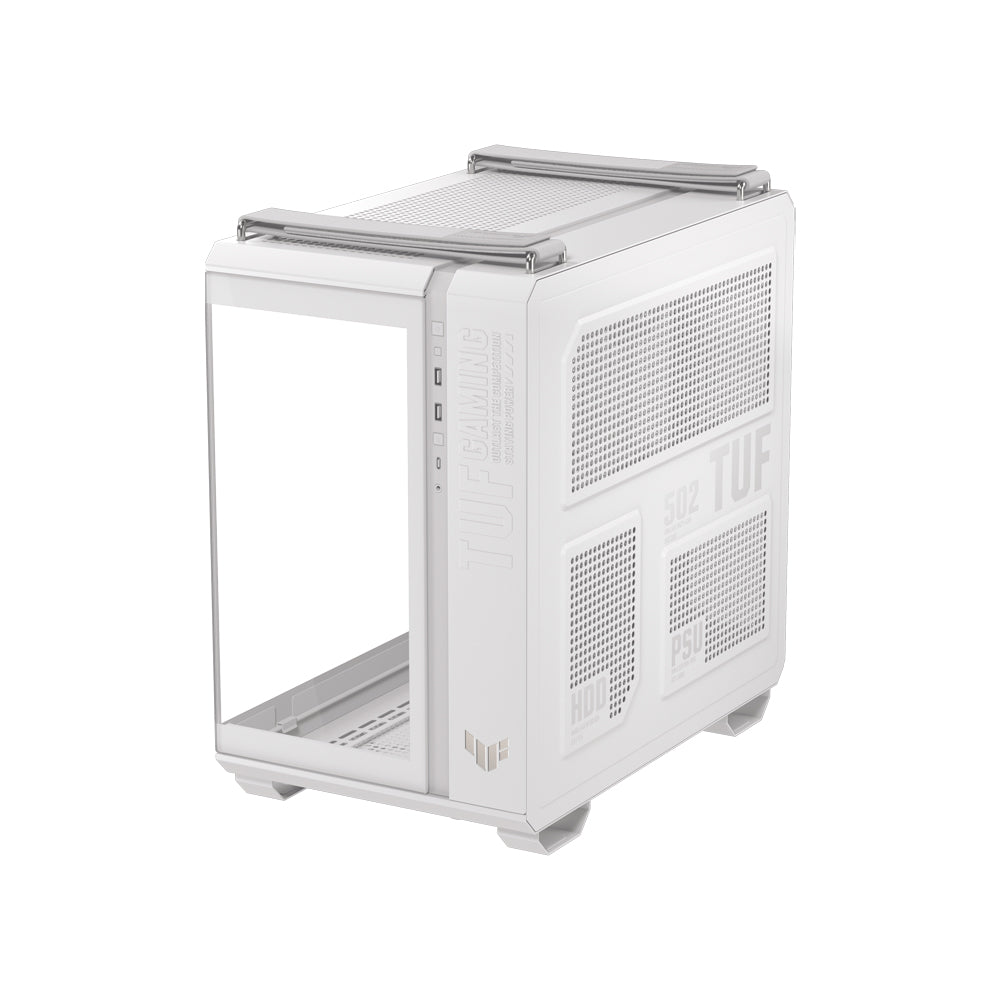 The ASUS TUF Gaming GT502 Horizon is a rugged, dual-chamber mid‑tower chassis for ATX, Micro‑ATX, and Mini‑ITX builds. It offers a sweeping panoramic tempered‑glass front and side view, advanced modular layout, and durable TUF Gaming styling in Black or White.