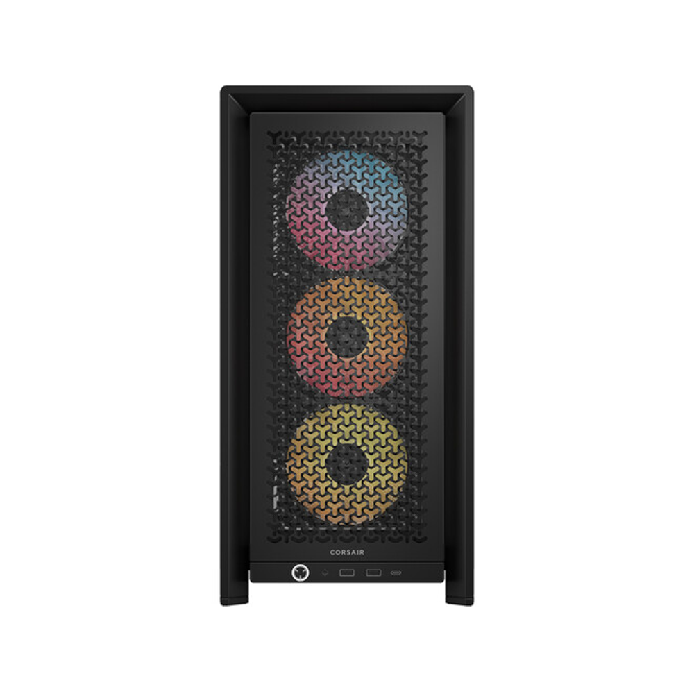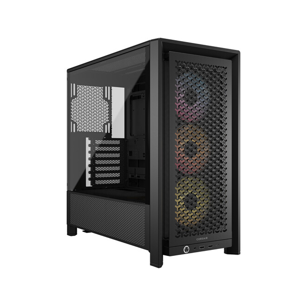 Corsair Frame 4000D RS ARGB Modular Mid‑Tower Chassis is a high‑airflow ATX case with included RS120 ARGB PWM fans, 3D mesh front, and modular layout. It supports Mini‑ITX to E‑ATX boards, GPUs up to 430 mm, CPU coolers up to 170 mm, up to 10 fans or multiple 360 mm radiators, tempered glass side panel, and front USB‑C/USB‑A connectors — ideal for gaming and enthusiast builds.