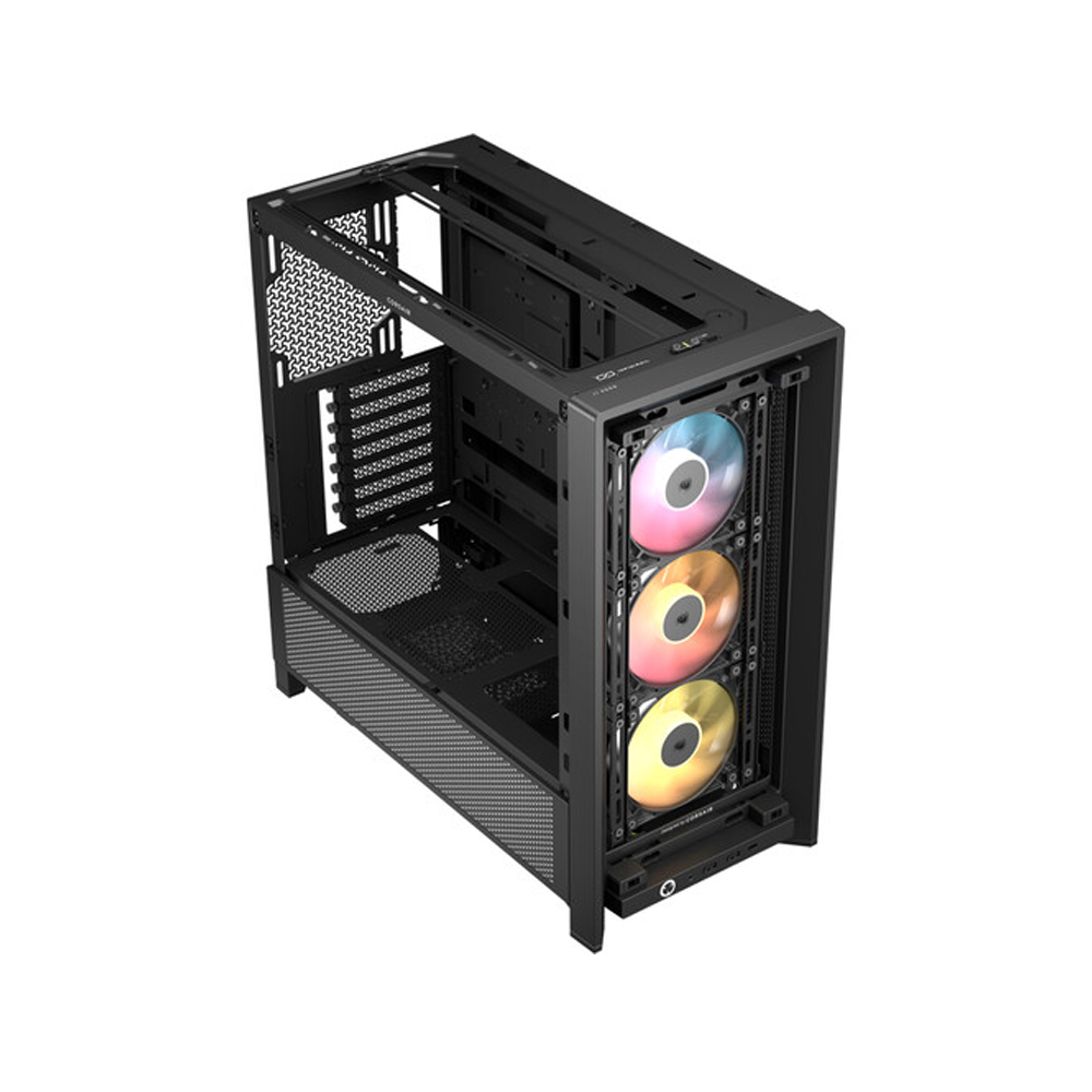 Included RS120 ARGB PWM Fans & Airflow‑Optimized Design - Comes with three RS120 ARGB PWM fans pre‑installed for efficient airflow and vibrant lighting effects. The mesh front panel and InfiniRail™ fan mounts support multiple fan sizes and help maximize intake air volume.