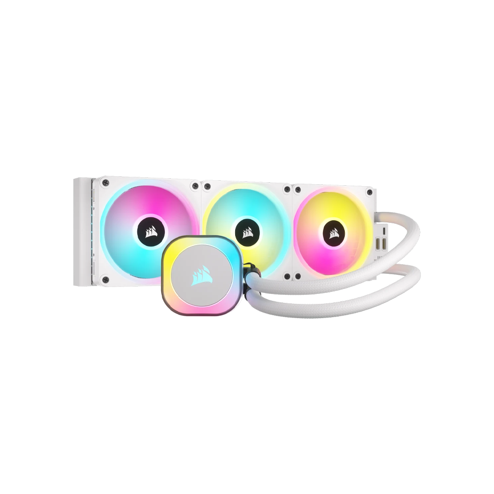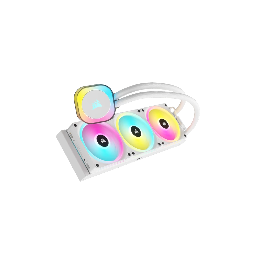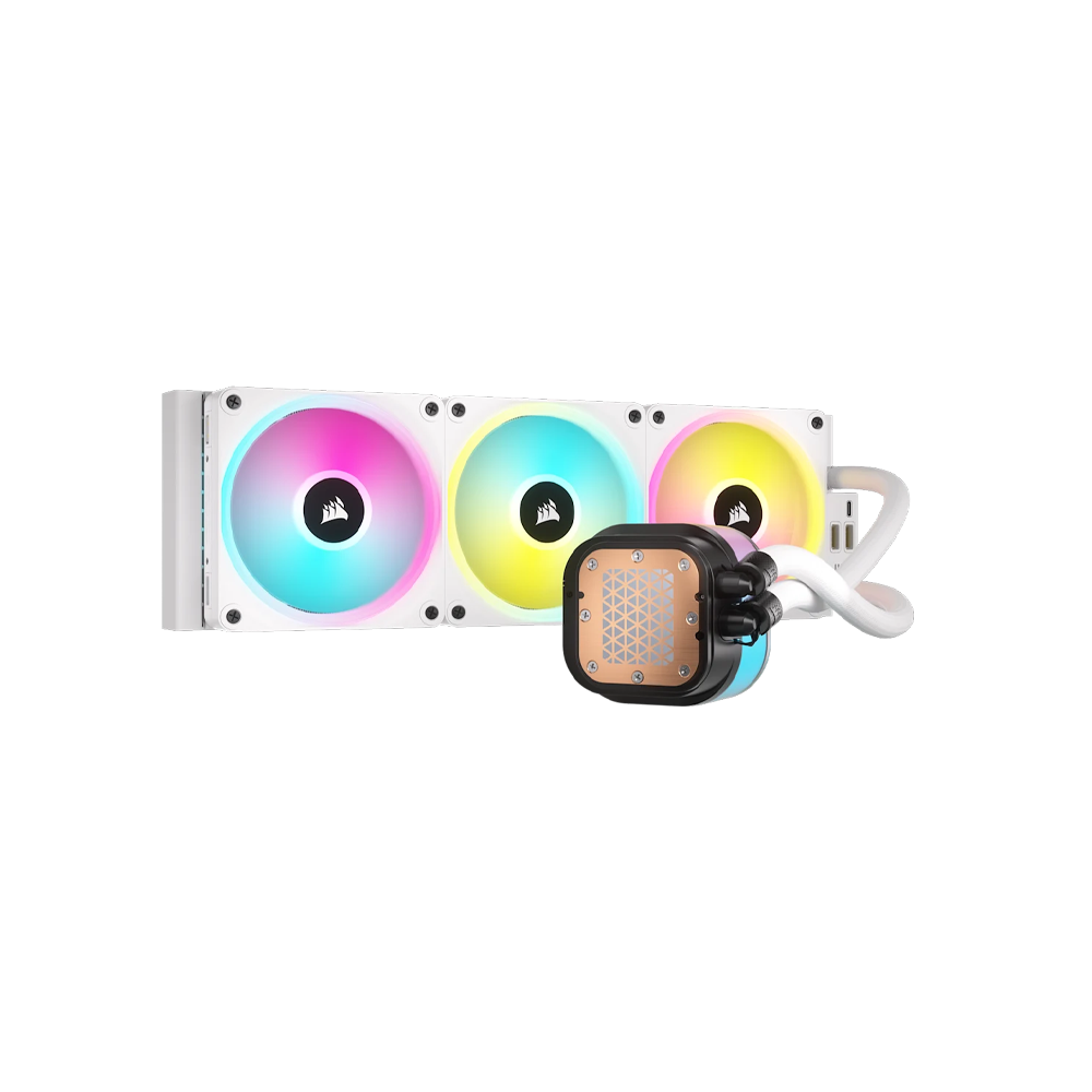 A 360 mm all‑in‑one (AIO) liquid CPU cooler with triple‑fan radiator, sealed cooling loop, and RGB lighting managed via iCUE software — designed for powerful cooling and full customization for gaming PCs, workstations, or overclocked rigs.