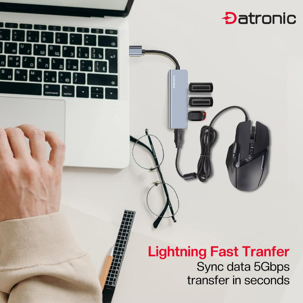 Compact Four-Port USB Expansion - The Datronic USB-C to 4x USB 2.0 Hub provides four-port expansion in a compact design. Supporting simultaneous device connections, it optimizes desk space while delivering reliable performance for USB peripherals, ideal for gaming, office work, and efficient data management on USB-C devices.