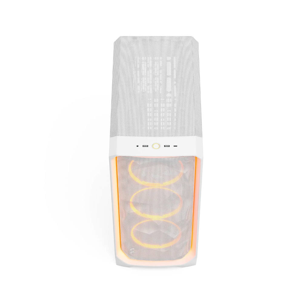 High-Airflow Angular Mesh Front - Signature angular mesh front panel maximizes air intake, ensuring efficient cooling for high-performance CPUs and GPUs while maintaining a bold, modern design.