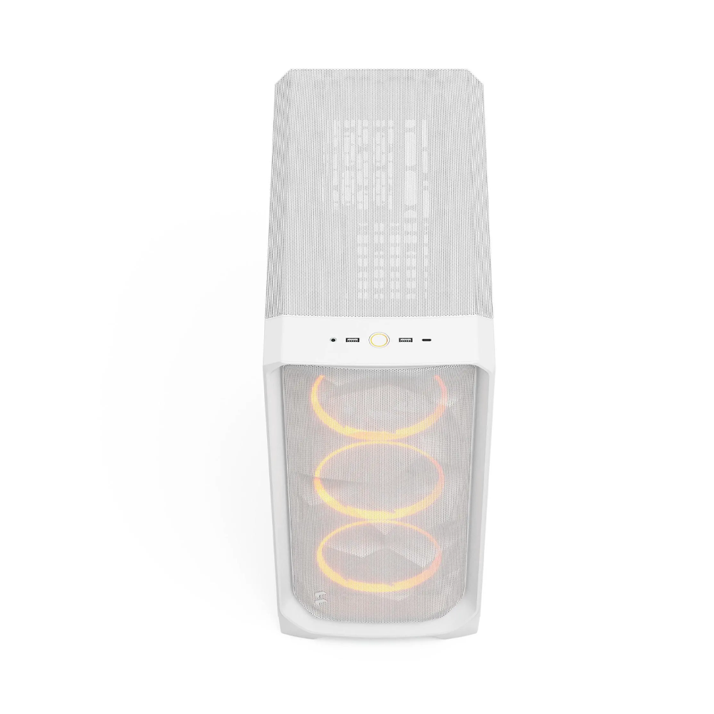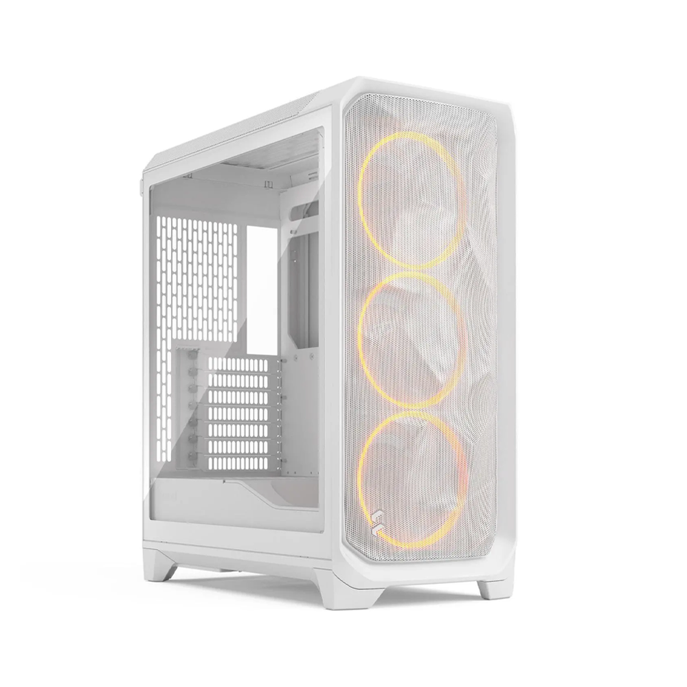 The Fractal Design Meshify 3 RGB ATX Tempered Glass Clear Tint Chassis [White] is a high-airflow mid-tower case combining powerful cooling with clean white aesthetics. Featuring the iconic angular mesh front panel, pre-installed RGB fans, and a clear-tinted tempered glass side panel, it offers excellent thermal performance and full hardware visibility for modern gaming builds.
