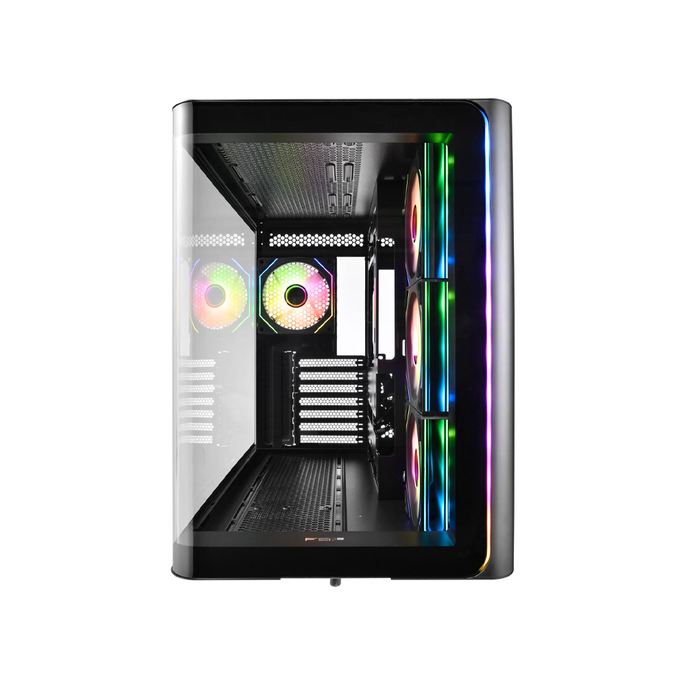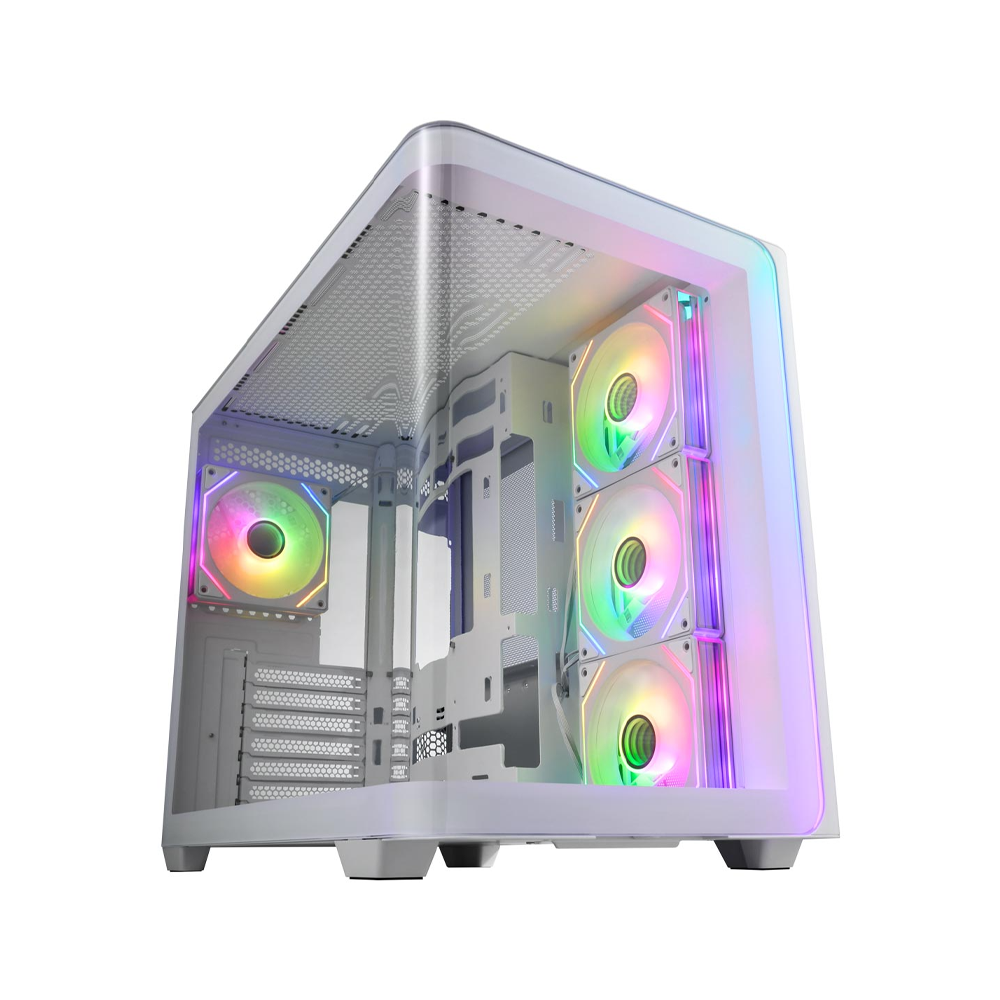 270° Panoramic Curved Tempered Glass - One-piece 270° curved tempered glass panel wraps around the front and side of the case to beautifully showcase internal components and ARGB lighting effects from multiple angles.