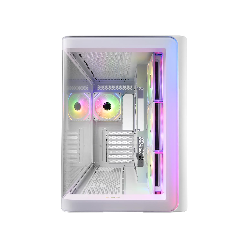 The FSP M580 ATX Mid-Tower ARGB Chassis is a stylish gaming case with a panoramic curved tempered glass exterior and integrated ARGB lighting. Designed for high-performance PC builds, it supports ATX (back-connect), M-ATX, and Mini-ITX motherboards while providing excellent airflow, flexible cooling options, and room for large GPUs and storage.