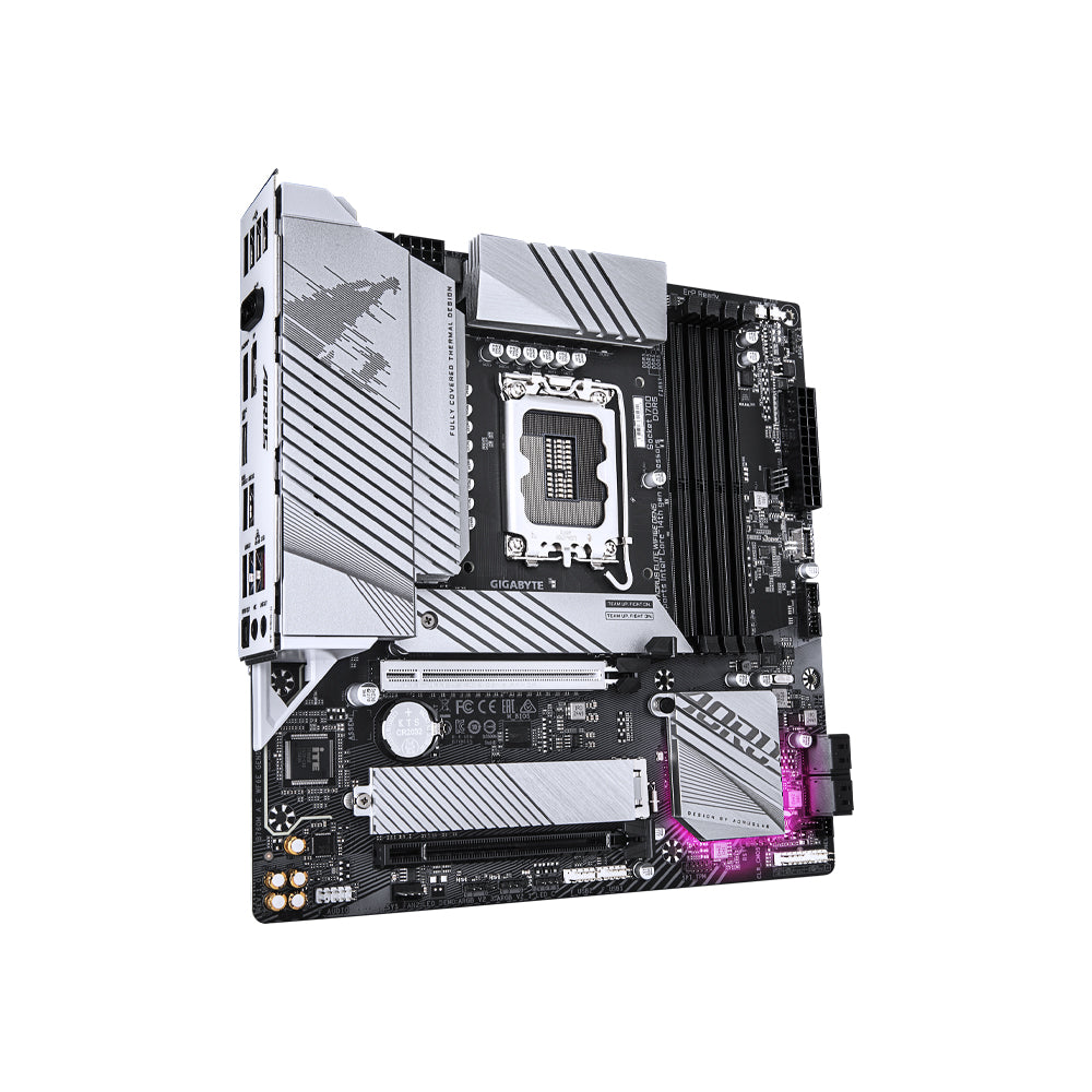 The GIGABYTE B760M Aorus Elite WiFi6E Gen5 is a Micro-ATX motherboard powered by the Intel® B760 chipset, designed for 12th, 13th and 14th Gen Intel® Core™ processors. It combines next-gen PCIe 5.0 support, DDR5 memory, high-speed networking and robust thermal design, making it ideal for compact gaming and productivity PC builds.
