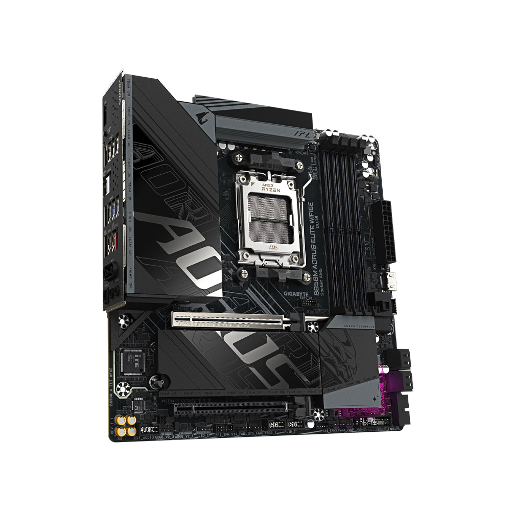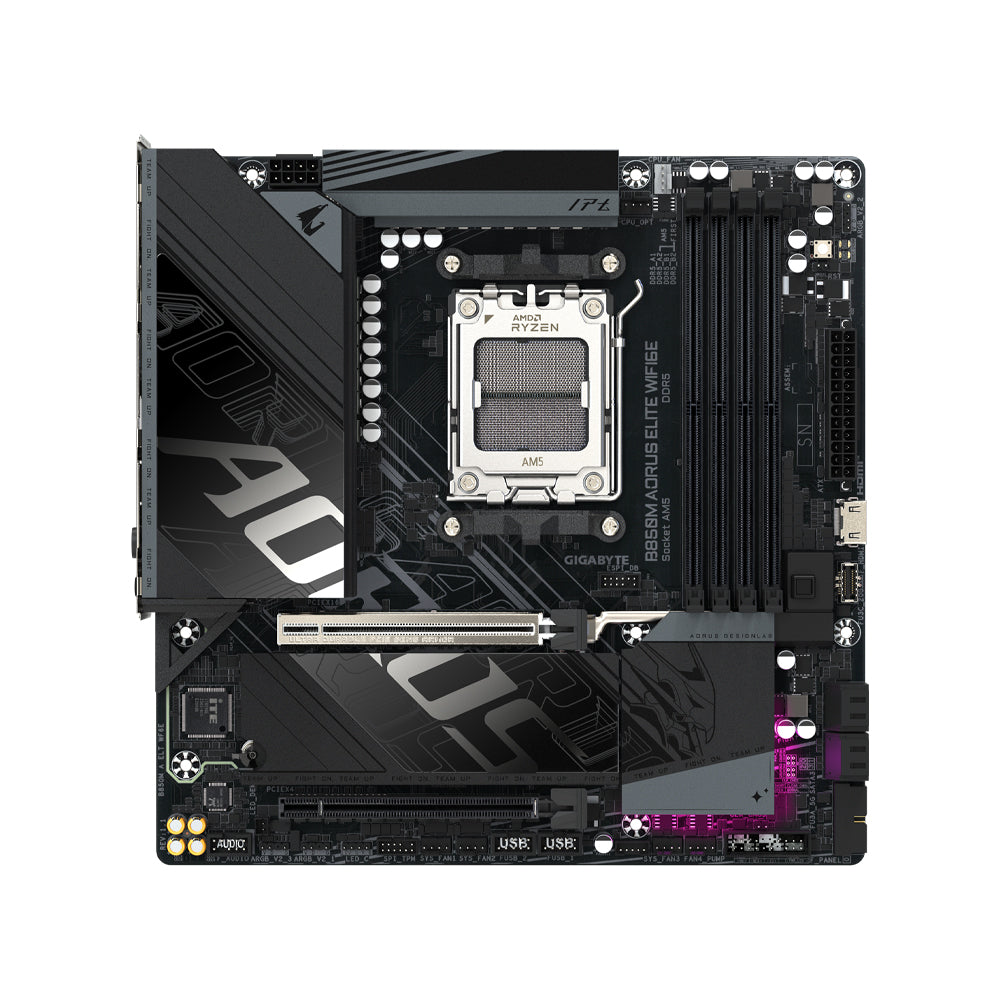 The GIGABYTE B850M AORUS ELITE WiFi6E is a Micro-ATX (mATX) AMD motherboard with the B850 chipset and AM5 socket, designed for AMD Ryzen™ 7000, 8000 & 9000 Series processors. It combines next-gen connectivity (Wi-Fi 6E, 2.5GbE LAN), high-speed DDR5 memory support, and flexible storage options — making it ideal for gaming, content creation, and mainstream performance builds.