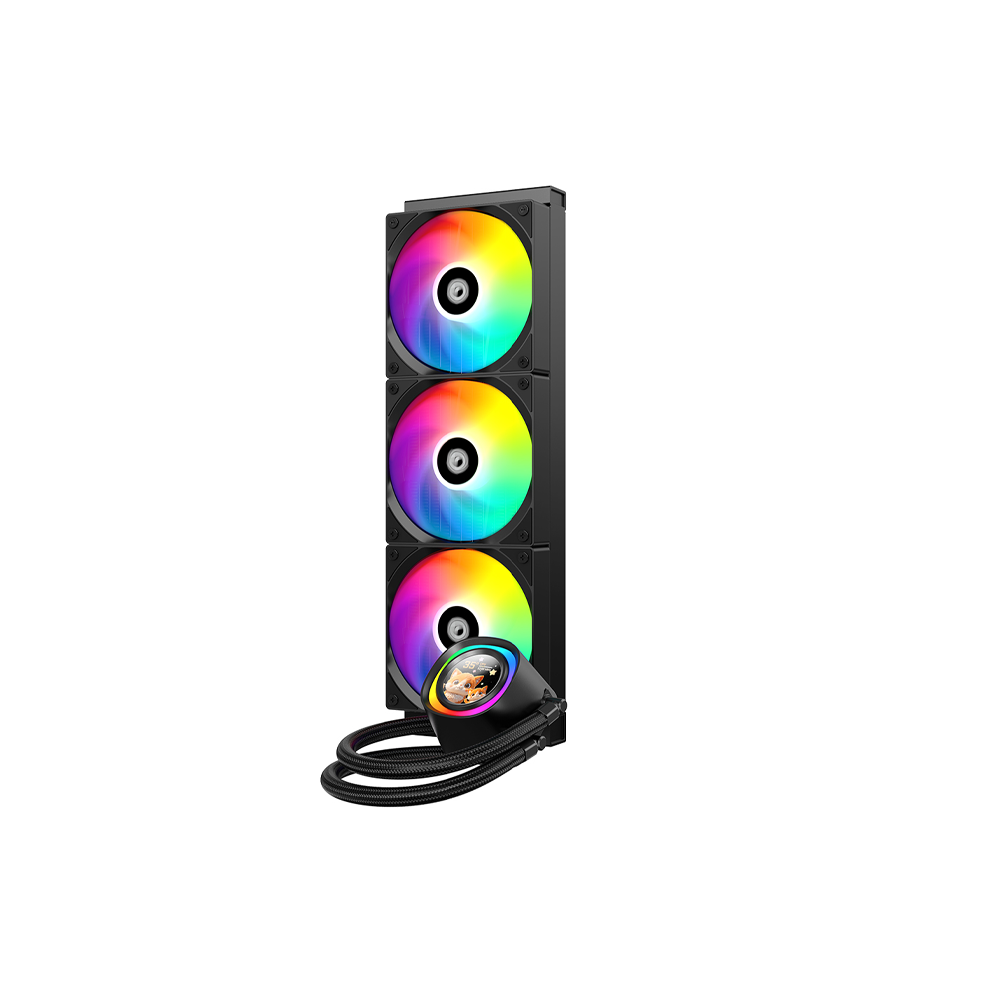 High-performance 360mm AIO liquid CPU cooler with ARGB infinity-mirror pump design, offering strong cooling, wide socket compatibility, quiet operation, and clean cable management.