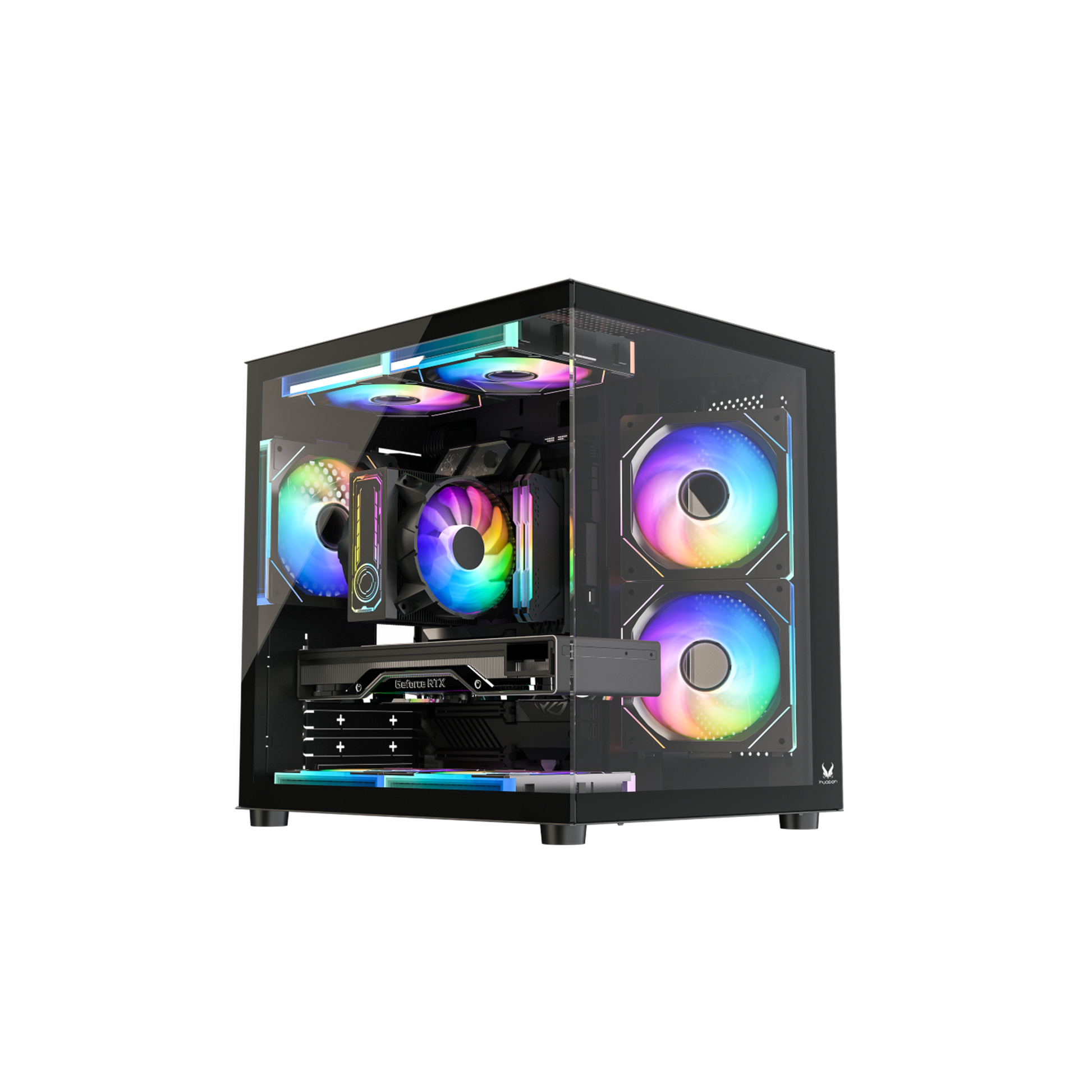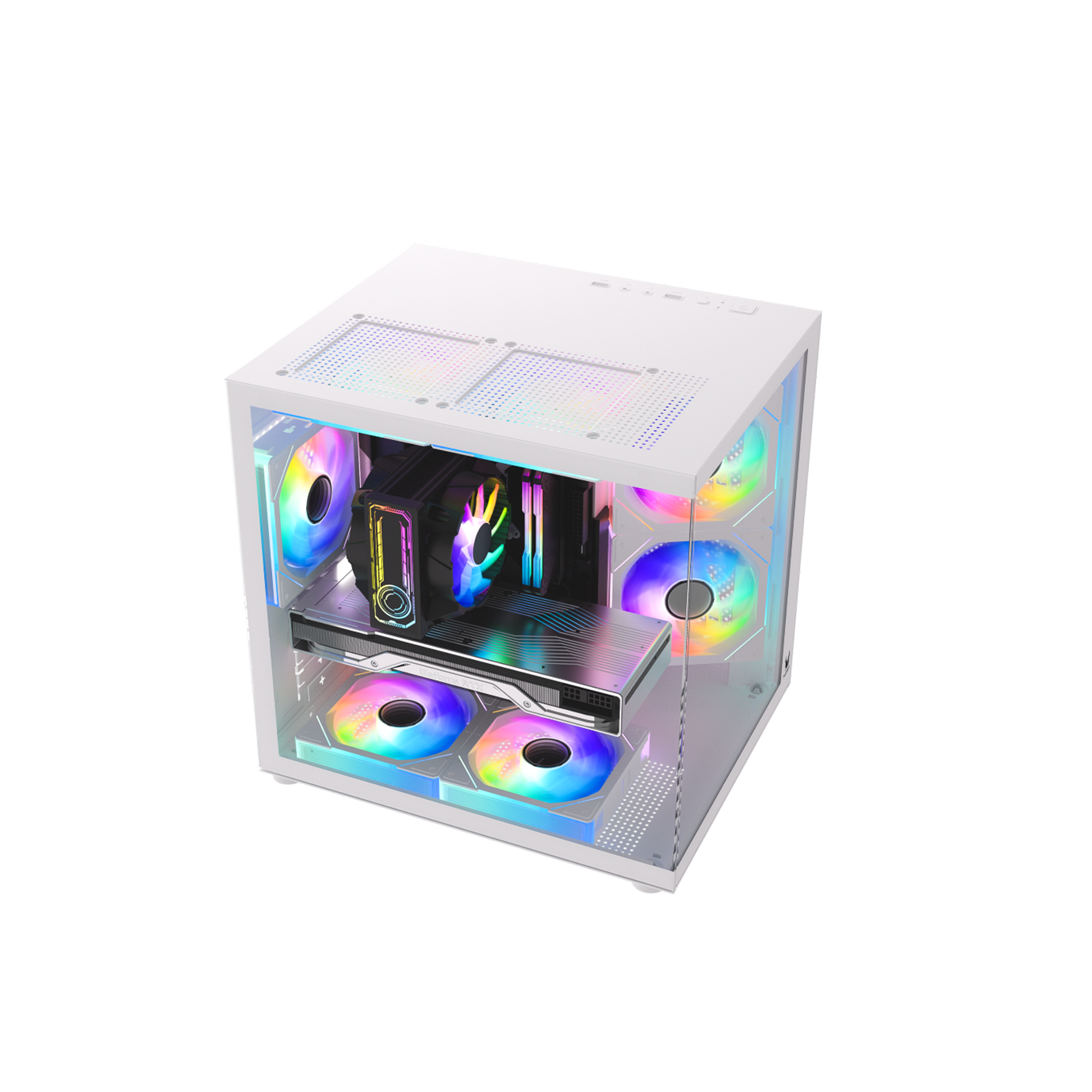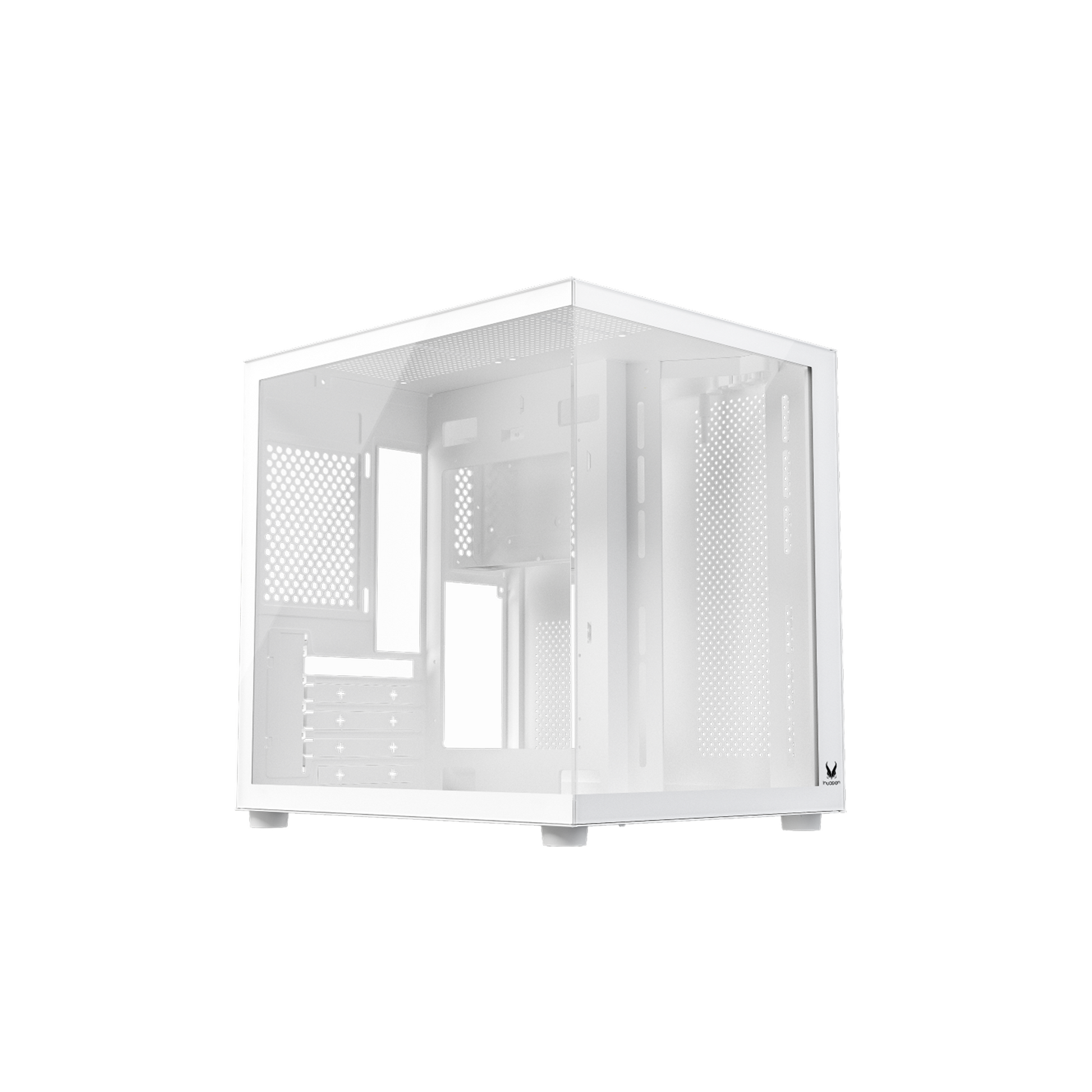 The Invasion C-8000 is a compact Micro-ATX PC chassis available in sleek black or white finishes. It features a tempered glass front panel and a tool-free side glass panel, offering a clear view of your components. With support for up to seven 120mm fans and compatibility with 240mm radiators, it ensures efficient cooling. The case accommodates Micro-ATX and Mini-ITX motherboards, providing flexibility for various builds. Its compact dimensions make it suitable for space-constrained setups without compromising on performance.