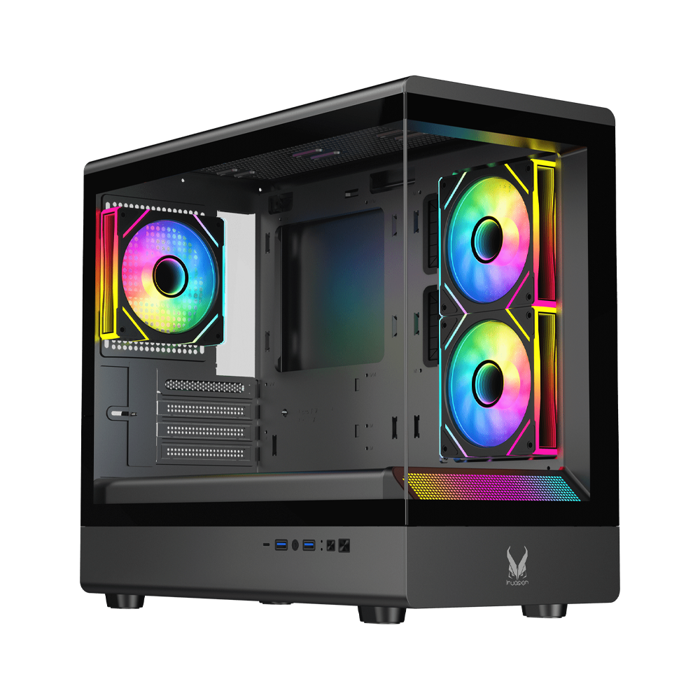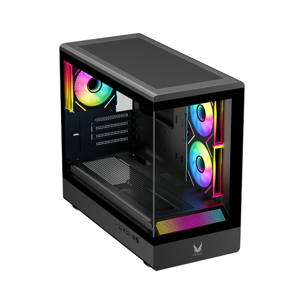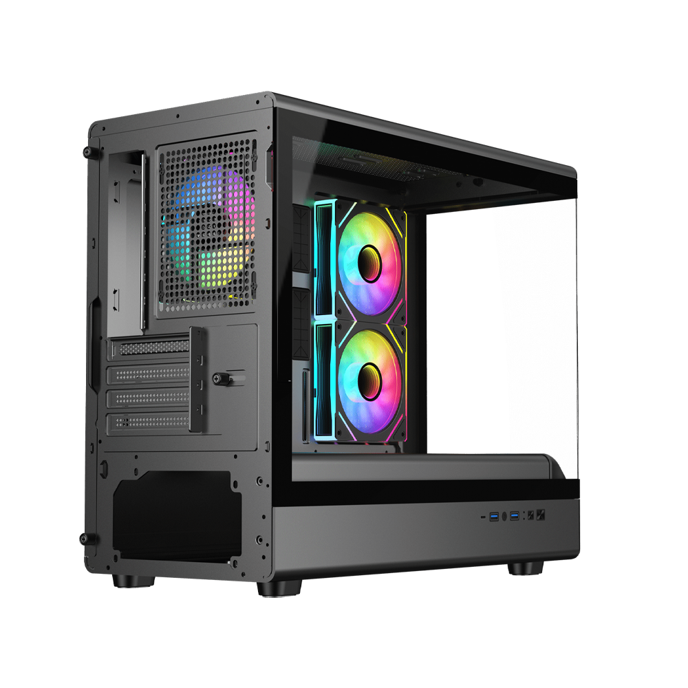 The Invasion LT‑360 Micro‑ATX ARGB Chassis is a stylish mid‑tower PC case designed for Micro‑ATX and Mini‑ITX builds. Featuring tempered glass panels, included ARGB lighting, flexible fan and radiator support up to 360 mm, and modern I/O ports including USB Type‑C, it delivers excellent cooling potential and component compatibility for gaming and everyday PC systems.