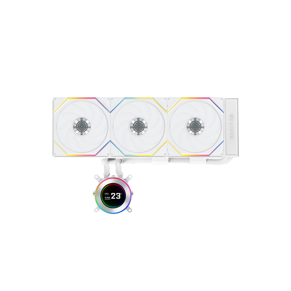 360 mm all‑in‑one liquid CPU cooler with built‑in 2.1" IPS LCD display, slim radiator and stylish side-mounted tubing for a clean, minimal interior — combining strong cooling, wide socket support and customizable display/ARGB lighting.