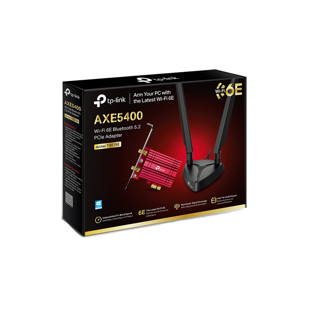 The TP-Link AXE5400 Wi-Fi 6E Bluetooth 5.2 PCIe Adapter delivers ultra-fast tri-band wireless performance and advanced Bluetooth connectivity. Designed for high-performance desktops, it ensures low-latency gaming, smooth 4K streaming, and seamless multitasking—perfect for users upgrading to the next-generation of wireless speed and stability.