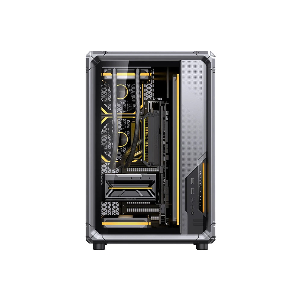 The JONSBO X400 is a mid‑tower ATX PC chassis that combines a bold “e‑sports mecha” skeletal design with practical build flexibility. It features a dual‑compartment layout and dual tempered glass panels to showcase internal hardware from multiple angles, while offering extensive cooling support and friendly cable management.