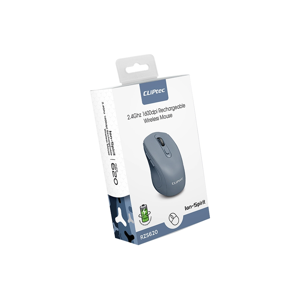 The CLiPtec RZS620 ION-SPIRIT is a rechargeable wireless mouse with 2.4 GHz connectivity and 1600 DPI precision, designed for smooth, responsive control and long-lasting performance.
