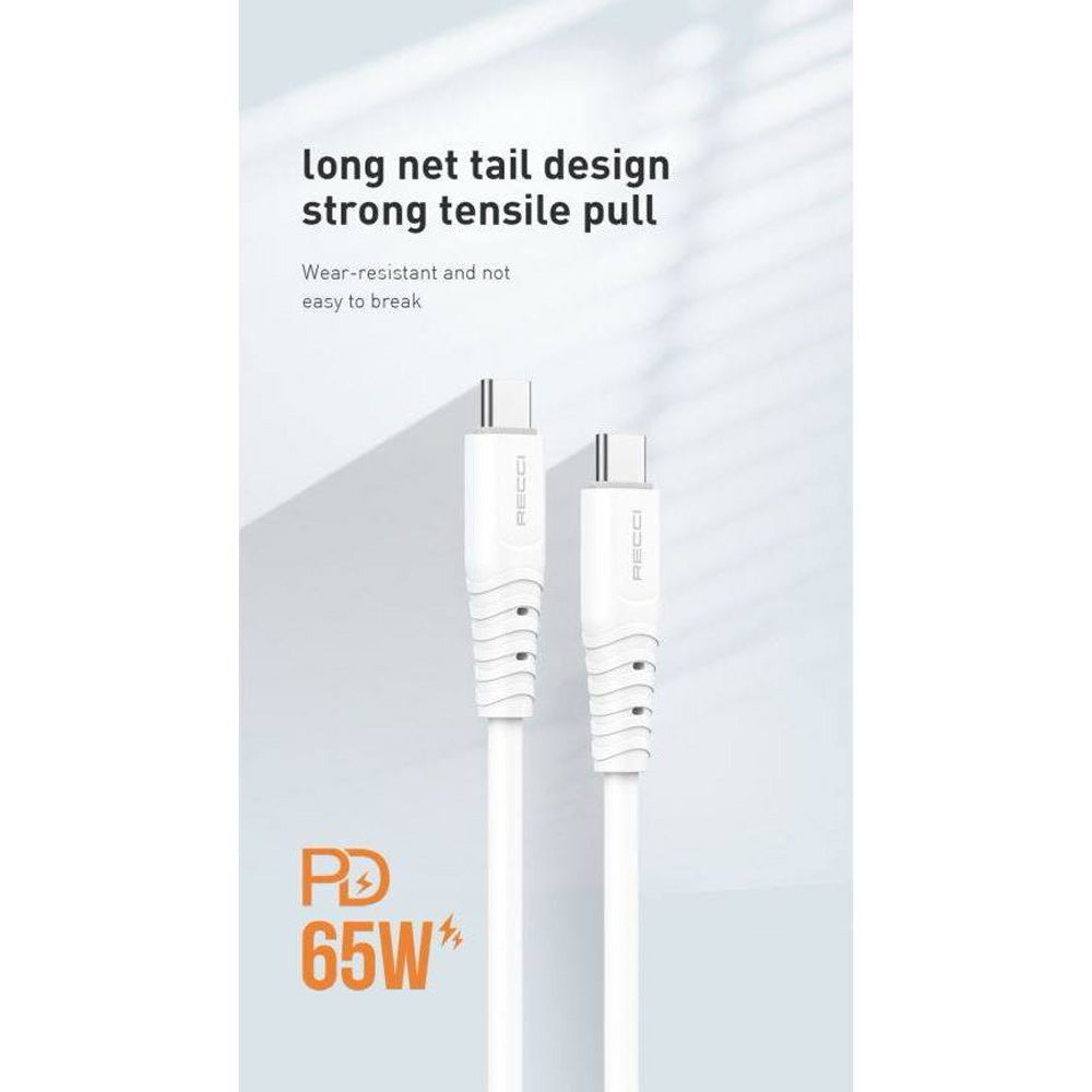 The RECCI Elegent RTC-P09CC Type-C to Type-C 1M Charging Cable - White is designed for users with Type-C enabled devices. It offers fast charging and high-speed data transfer between compatible devices. The 1-meter length provides flexibility for everyday use, whether at home or on the go. Made with durable materials, the cable ensures a long lifespan while maintaining high performance. The sleek white design adds a stylish look while delivering efficient charging and syncing.