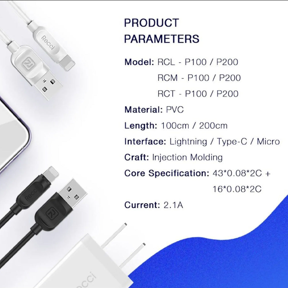 The RECCI Rayline RCT-P100 Type-C 1M Charging Cable in black provides fast and efficient charging for Type-C devices. The 1-meter length ensures easy reach for everyday use, while the durable construction guarantees long-lasting use. This cable supports both fast charging and data transfer, making it a versatile accessory for modern smartphones, tablets, and laptops.