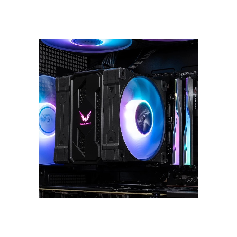 A high-capacity tower-style air cooler with six direct-contact heatpipes and ARGB lighting — aimed at delivering strong cooling performance for mid- to high-end CPUs, while enhancing aesthetic appeal in gaming and high-performance builds.