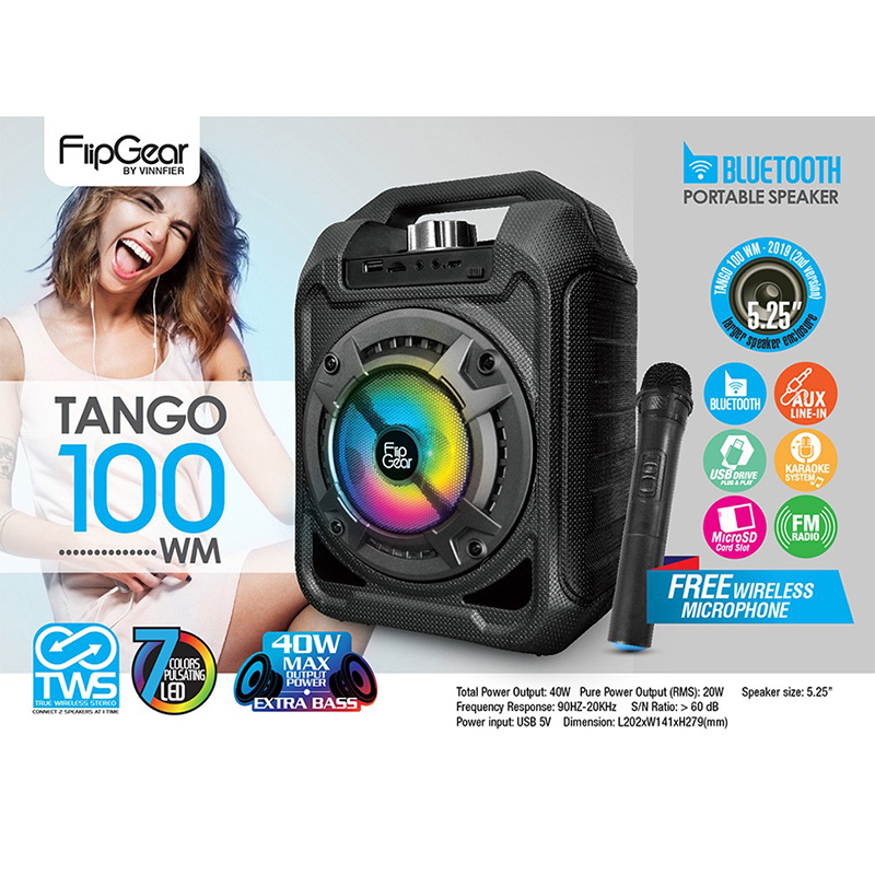 Versatile Connectivity Options - With USB, Micro SD, and AUX inputs, the Vinnfier Tango 100 WM provides versatile playback options. Stream music or enjoy karaoke with ease, making it an ideal portable speaker for parties, outdoor events, or home entertainment setups.