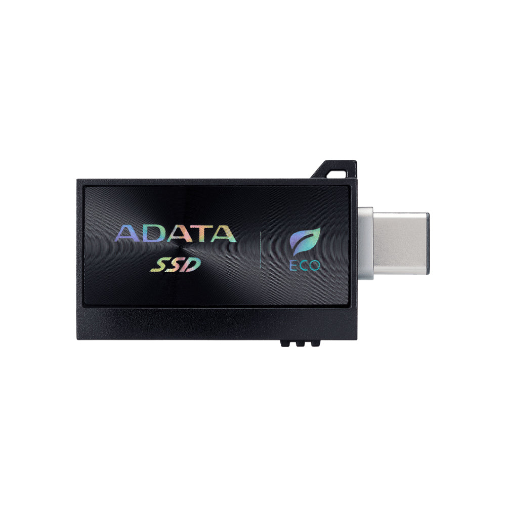 The ADATA SC730 is an ultra-compact portable SSD with dual USB-C and USB-A connectors built into a minuscule 7.8 g body—smaller than a typical flash drive. With USB 3.2 Gen 2 support, it delivers fast 600 MB/s read and write speeds. Crafted from 50% post-consumer recycled (PCR) materials and finished with an elegant iridescent nano-im print coating, it stands out for both portability and sustainability.