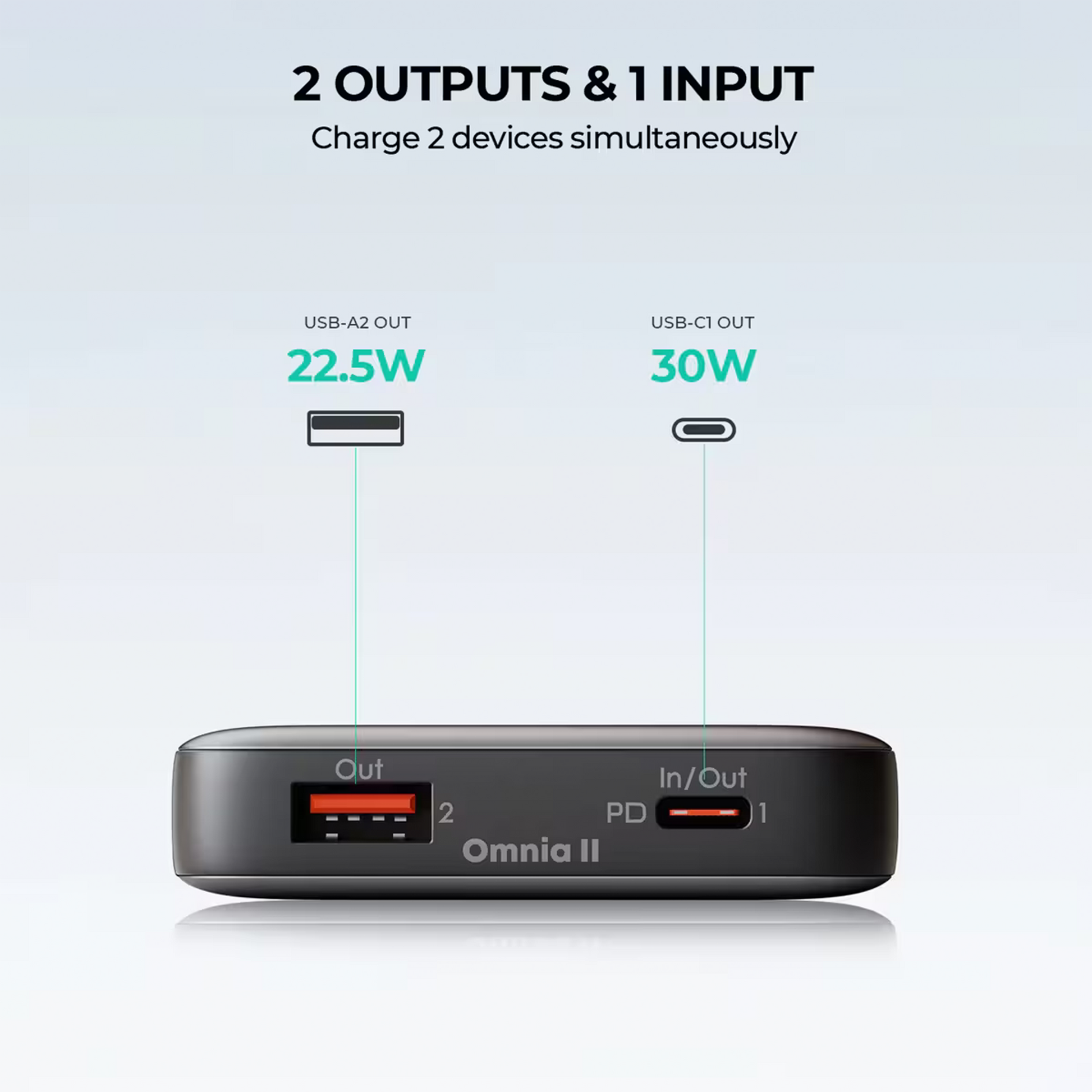 The Aukey PB-Y41 Sprint X 10,000mAh 30W Power Bank is a compact and efficient portable charger designed for fast and simultaneous device charging. With a sleek grey finish, it offers high-speed Power Delivery (PD) and Quick Charge (QC) capabilities, making it suitable for smartphones, tablets, and other USB-powered devices.