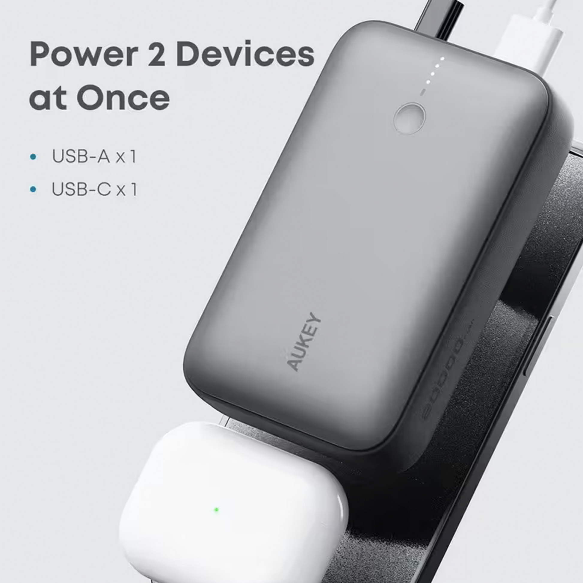 The Aukey PB-Y57 Spark Mini 20000mAh Power Bank is a compact yet powerful portable charger designed for modern devices. Despite its substantial capacity, it maintains a slim profile, making it ideal for travel and daily use.