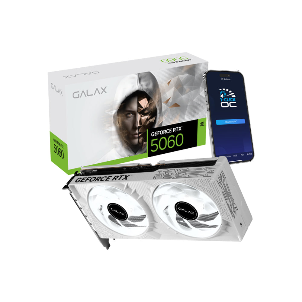 GALAX GeForce RTX™ 5060 1-Click OC 8GB GDDR7 Graphics Card delivers next-generation performance powered by NVIDIA architecture with easy one-click overclocking. Designed for smooth 1080p and high-refresh gaming, it features efficient cooling, fast GDDR7 memory, and reliable performance for gaming and creative workloads.