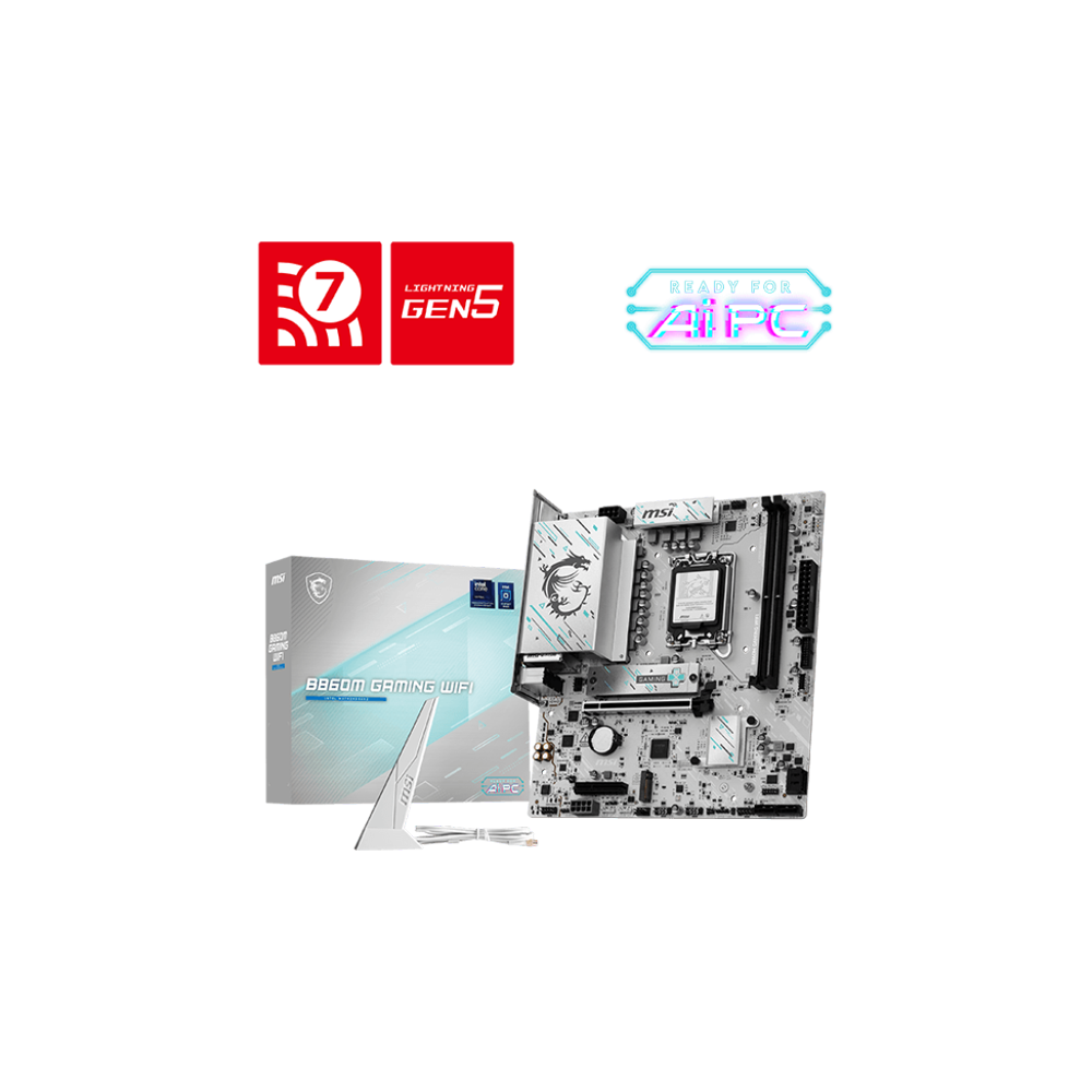 MSI B860M Gaming WiFi MATX DDR5 M.2 Motherboard — LGA1851 mATX motherboard with DDR5, triple M.2, PCIex16, Wi‑Fi 7, 3 ARGB V2 + 1 RGB headers — compact and powerful.
