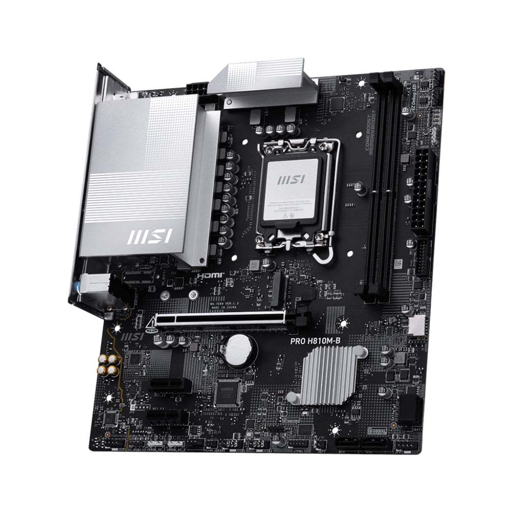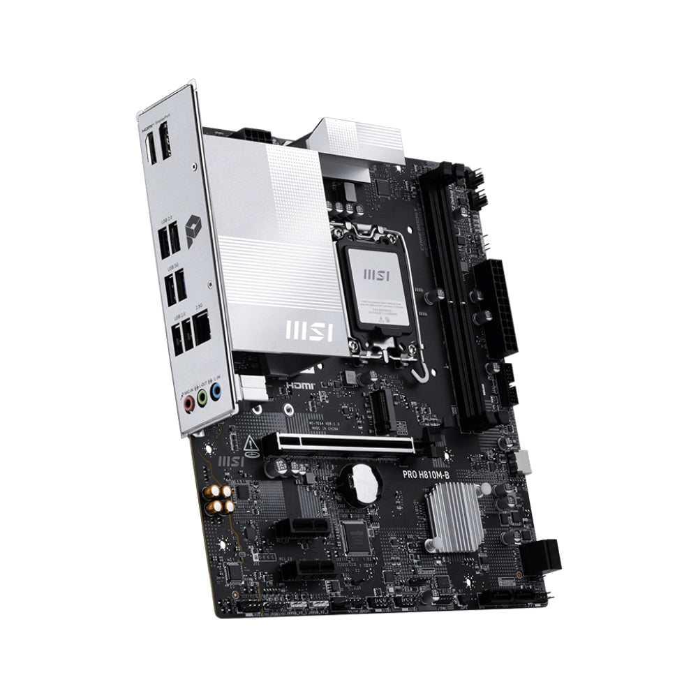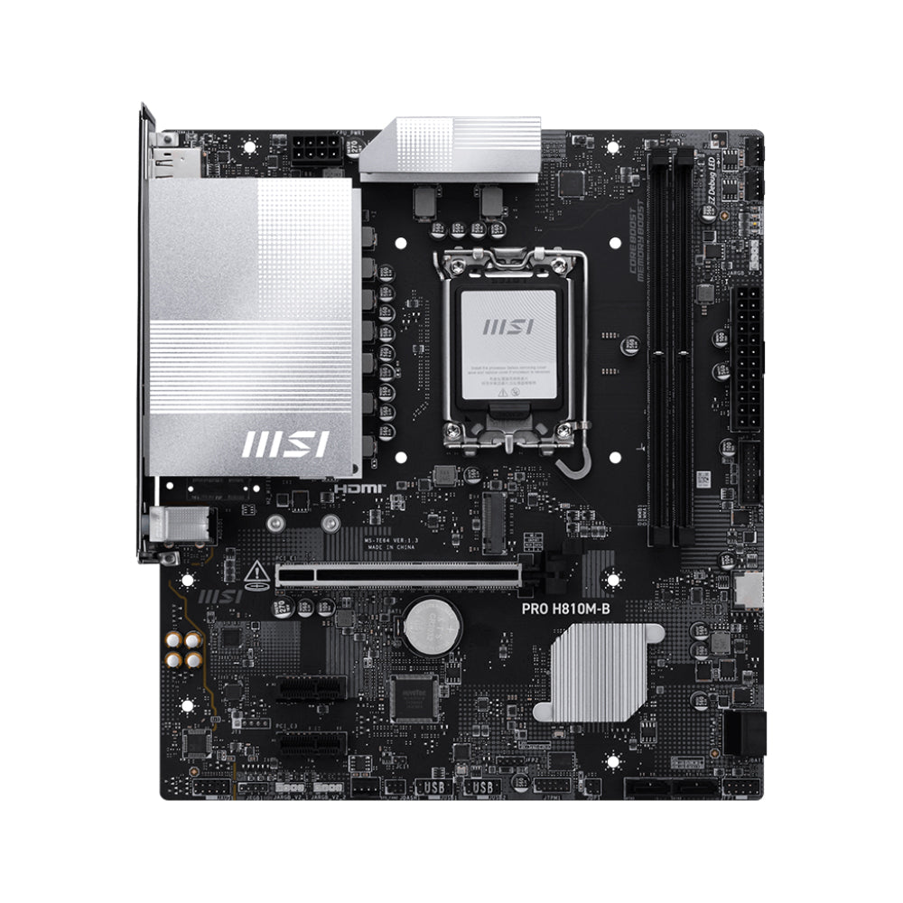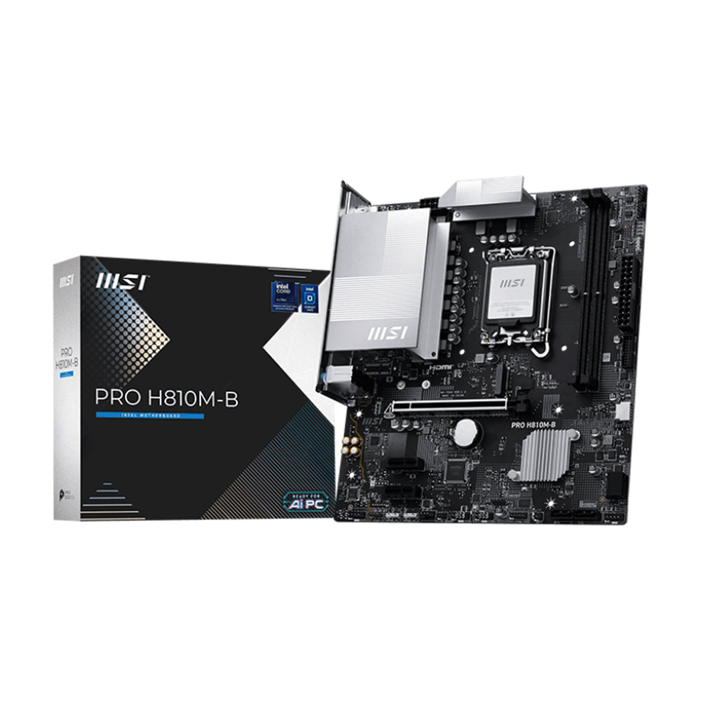 The MSI PRO H810M-B supports Intel® Core™ Ultra Series 2 CPUs with LGA 1851, DDR5 memory, PCIe® 5.0 graphics, and M.2 NVMe storage. Engineered for reliable performance and efficiency, it’s ideal for productivity, business, and everyday computing in a compact Micro-ATX design.