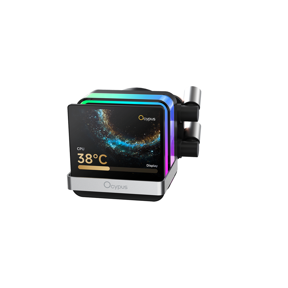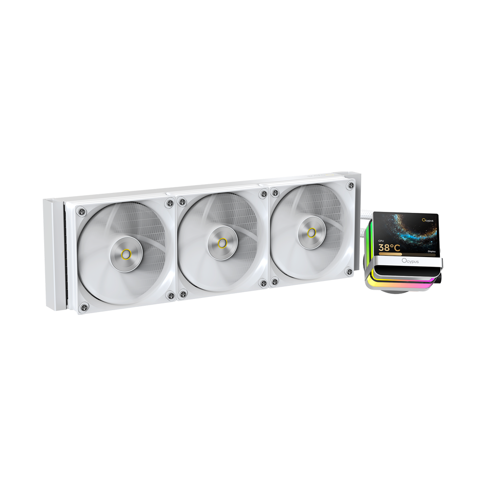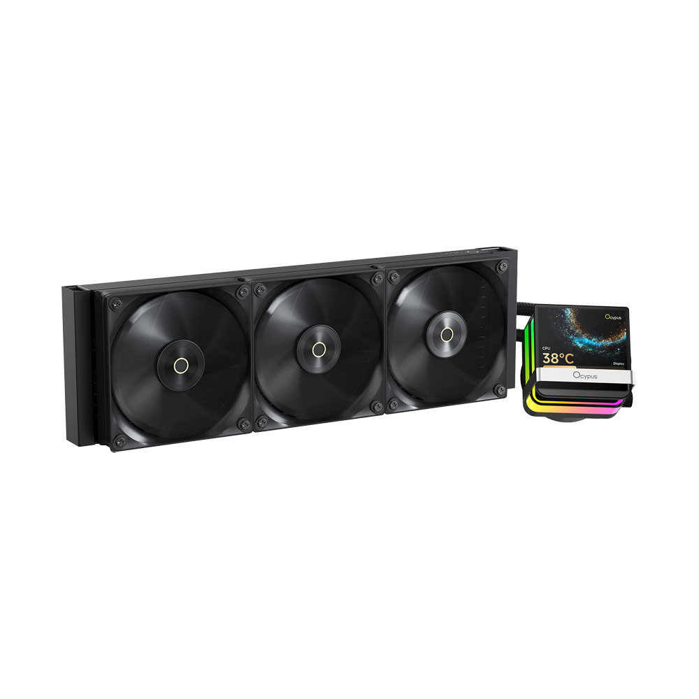Ocypus Sigma L36 Pro is a 360 mm ARGB AIO CPU cooler featuring a 3.5″ IPS display on the pump block, large aluminium radiator, and triple PWM 120 mm fans. Its ceramic-based pump with a 3700 mm² copper base ensures efficient heat dissipation, while wide Intel/AMD socket support and customizable display/ARGB lighting make it ideal for gaming rigs, high-performance CPUs, and showcase PC builds that value both cooling power and visual flair.