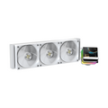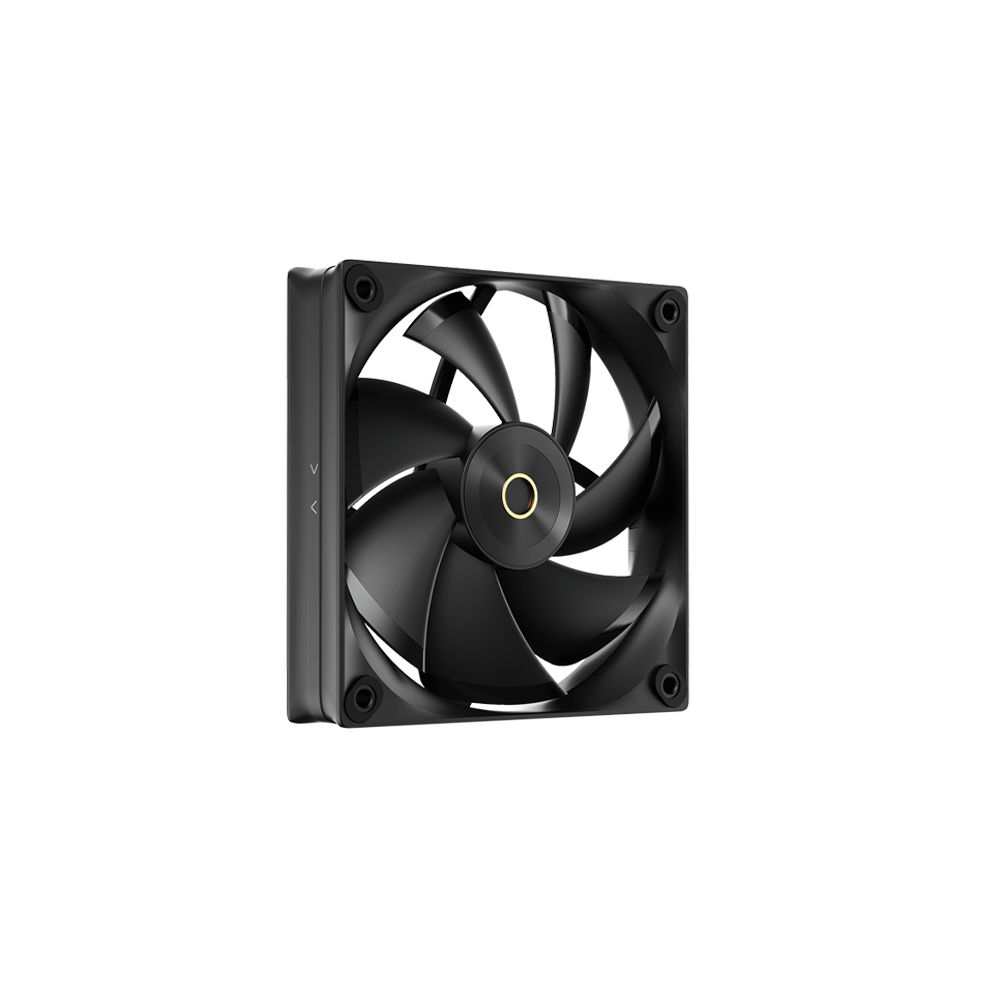 Triple 120 mm PWM ARGB Fans - Three 120×120×25 mm fluid-dynamic-bearing PWM fans, speed range 500–2400 RPM (can be limited to 500–2000 RPM via supplied speed-reduction cable), airflow up to ~90 CFM, static pressure ~5.8 mm H₂O — providing strong cooling performance even under heavy CPU load.