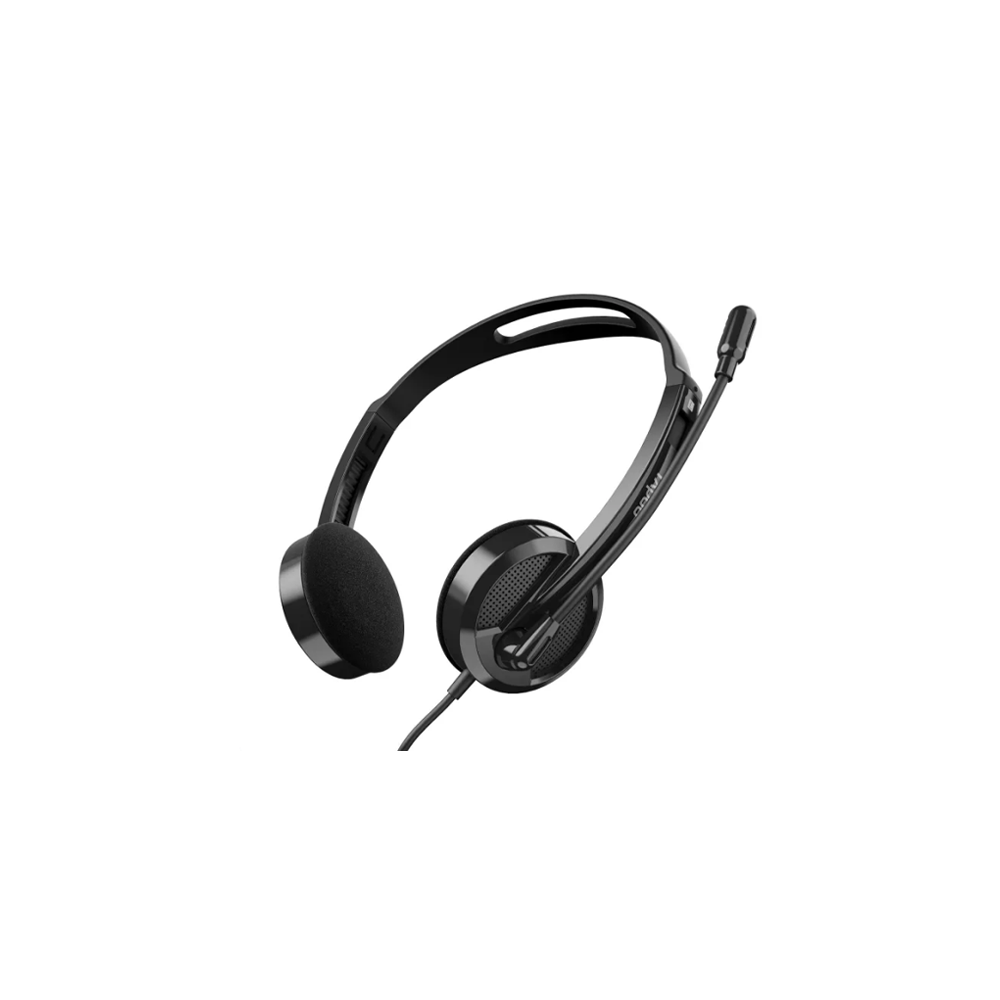 A wired stereo headset with 3.5 mm jack, offering clear stereo audio, a rotatable HD‑voice microphone, and comfortable on‑ear design — perfect for calls, online classes, gaming or casual multimedia.
