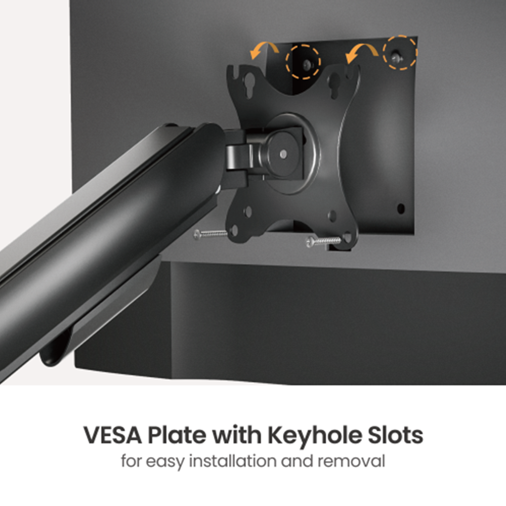 Quick and Easy Installation - Set up is a breeze with clamp and grommet mounting options included. The quick-release VESA plate simplifies monitor attachment, requiring no special tools. This versatile monitor arm fits most desks, making it a practical choice for any user.