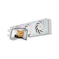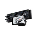 360 mm all-in-one AIO liquid CPU cooler with a 6.67-inch curved display on the pump block, large aluminium radiator, triple 120 mm PWM ARGB fans, powerful pump and wide Intel/AMD socket support — combining strong cooling, visual flair, and modern features.