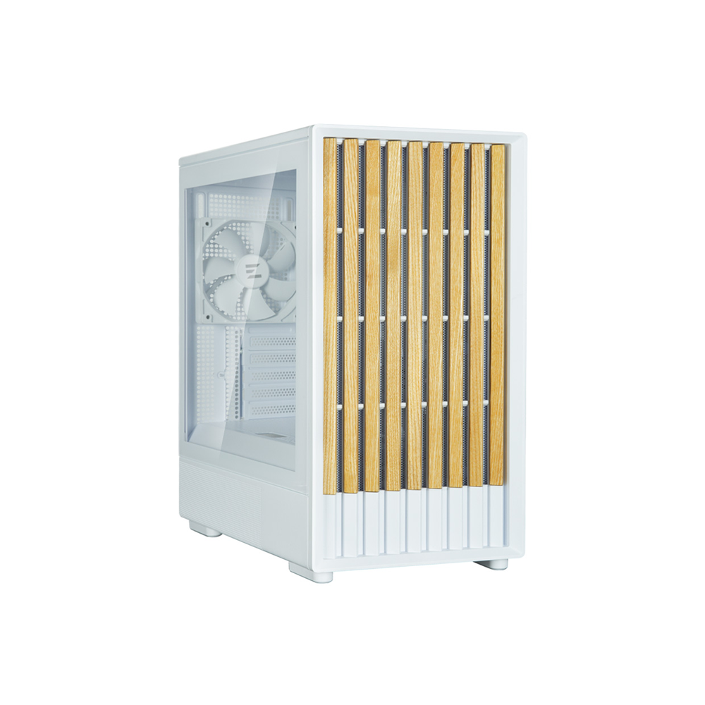 The Zalman P10 NAMU Micro-ATX Chassis in Black or White blends elegance with functionality. Featuring three 120mm ARGB fans, panoramic tempered glass, and woodgrain accents, it ensures optimal cooling and stunning aesthetics, perfect for compact, high-performance gaming PCs.